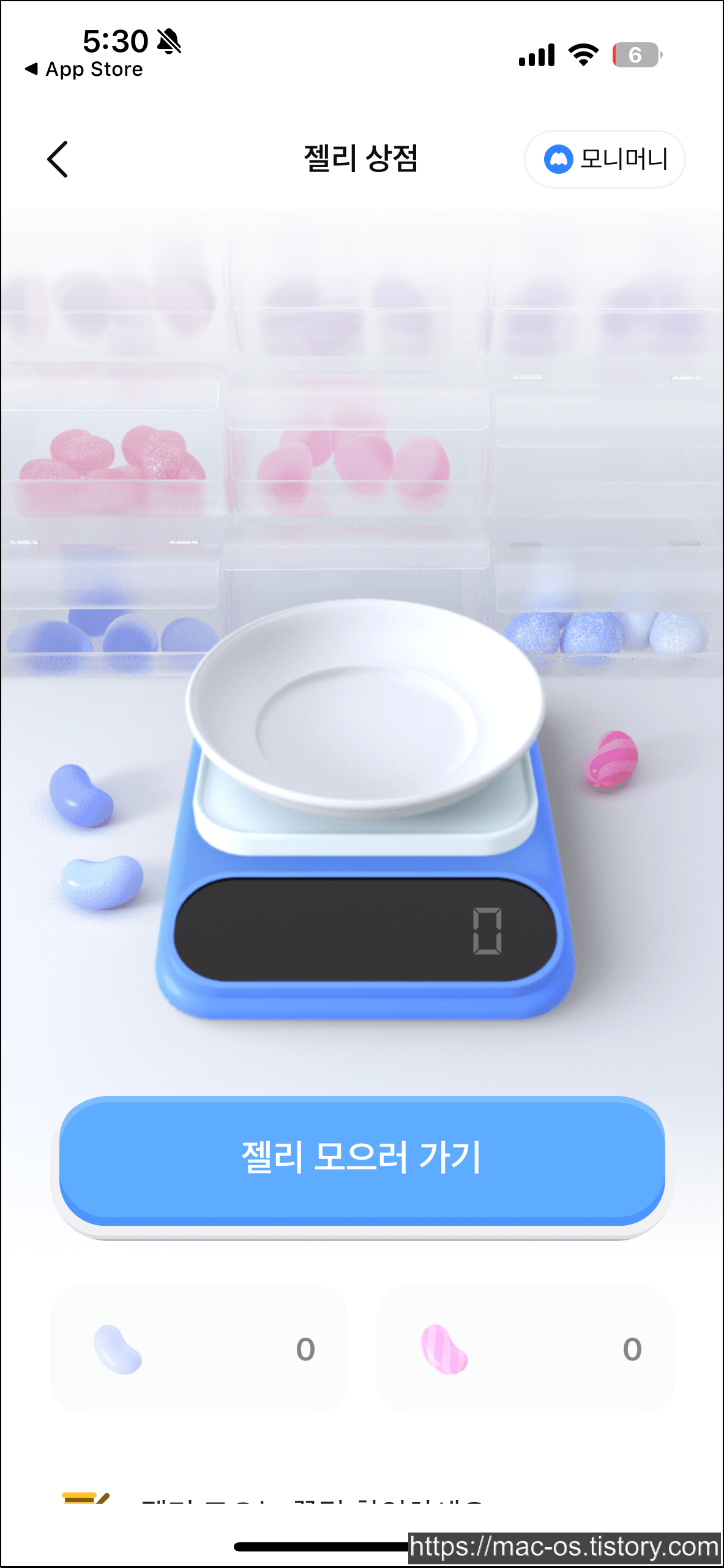 - 젤리를 모니머니로 바꿔야 실제 돈이 된다.
