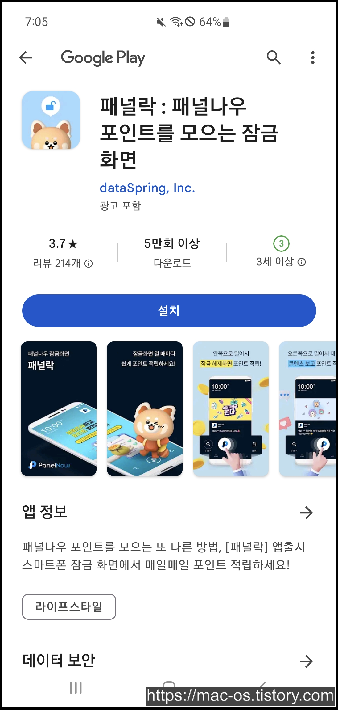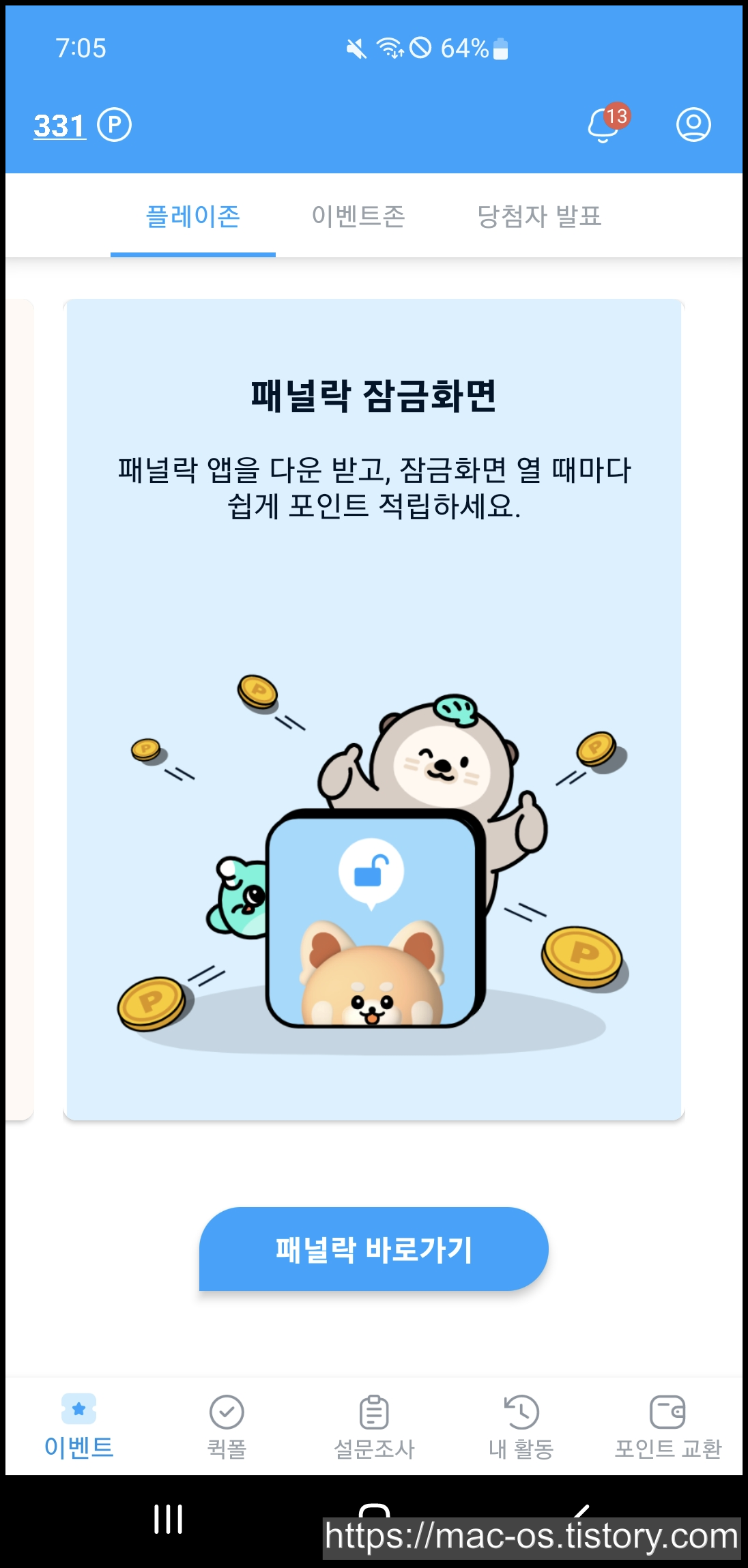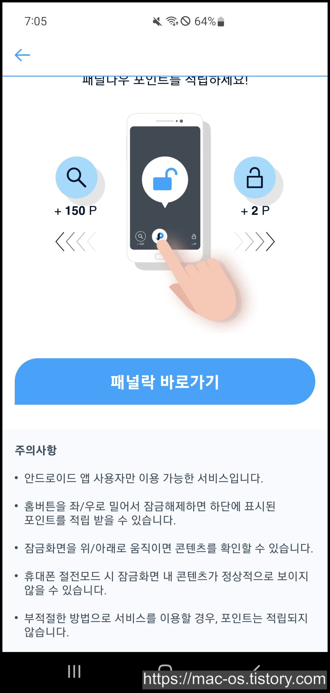패널나우에서 출시한 잠금화면 앱이다. 잠금화면을 해제하고 패널나우 포인트를 적립할 수 있다.