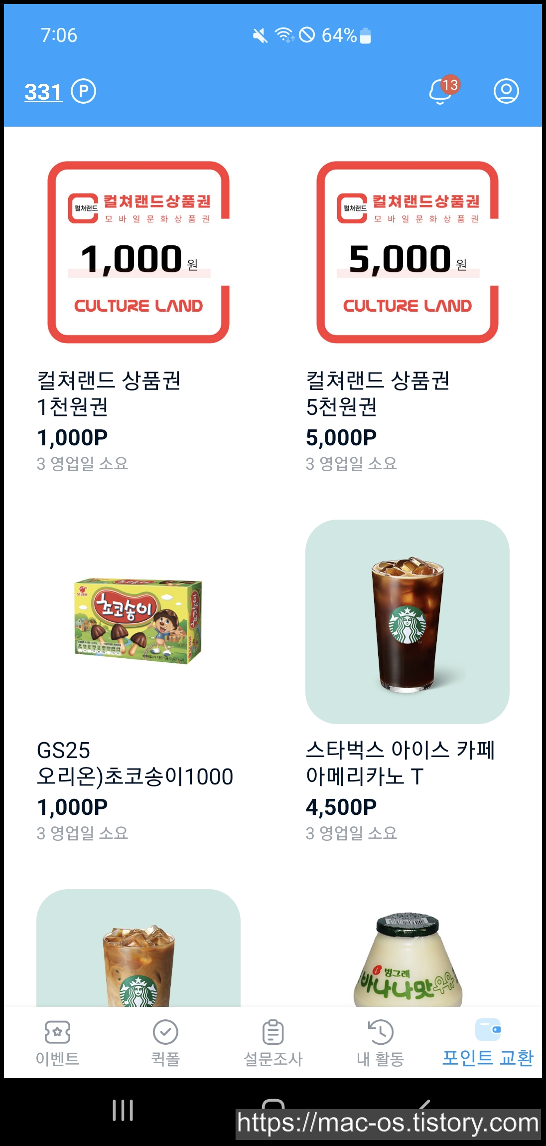 - 설문조사를 통해 포인트를 적립할 수 있음