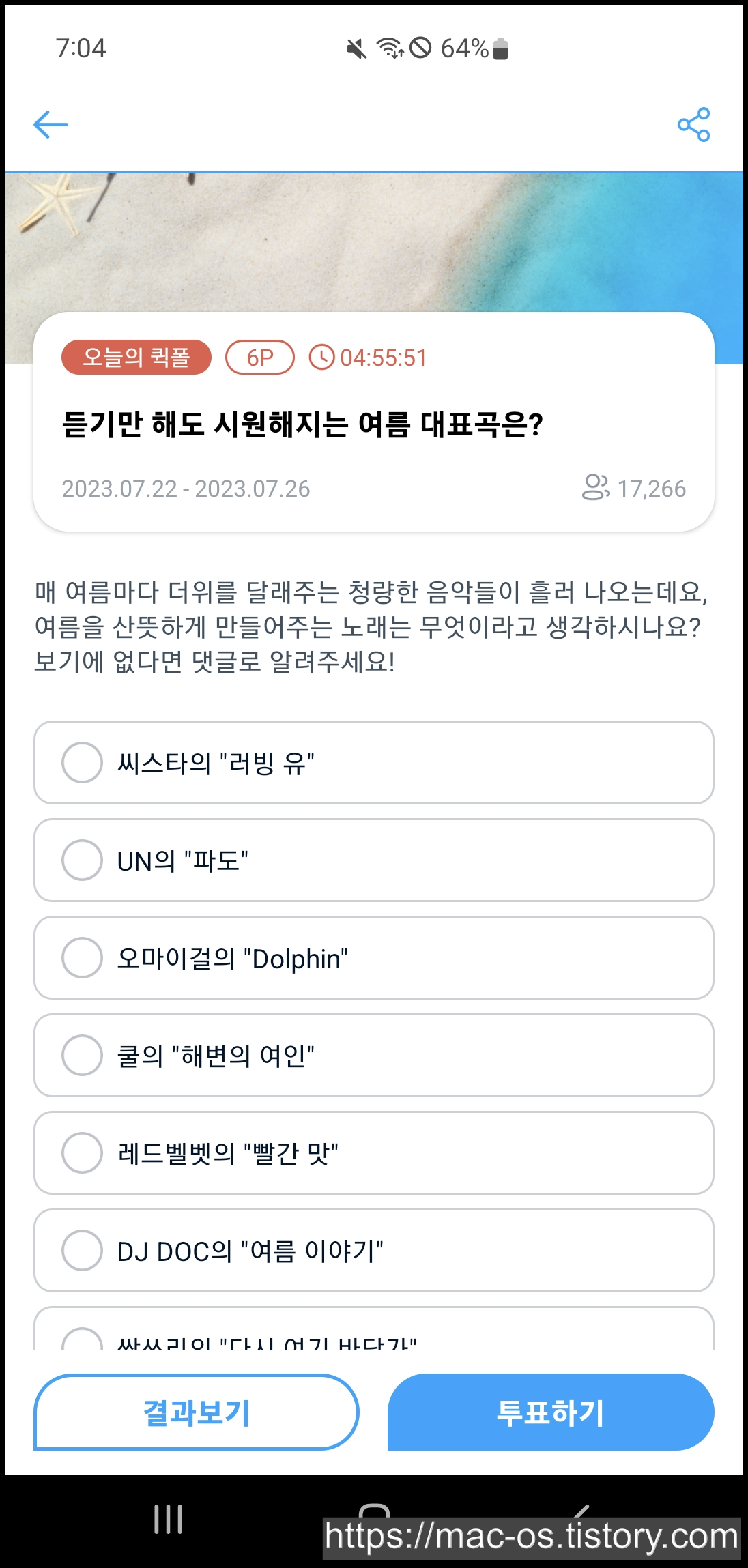 퀵폴에서는 객관식 설문조사라고 보면 되는데, 보기에 있는 선택지를 체크하고 투표하면 포인트가 적립된다.