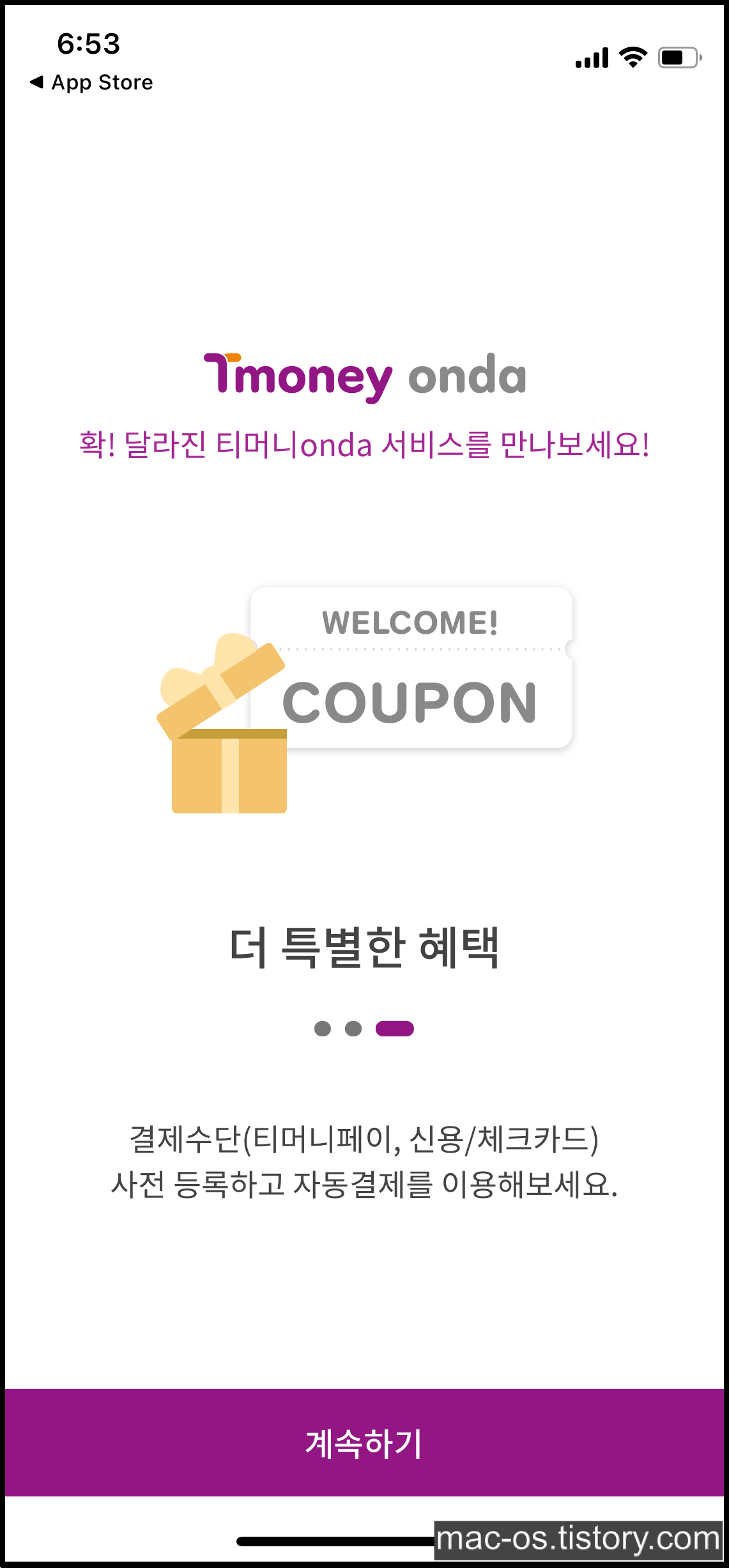 티머니onda를 딱 한 번만 이용한다 하더라도 첫 가입 감사 쿠폰 3천원이나 자동결제 카드 등록 감사쿠폰 3천원을 사용해 3천원을 절약할 수 있고, 스타벅스 쿠폰까지 받을 수 있으니 나름 괜찮은 앱이라는 생각이 들어요.