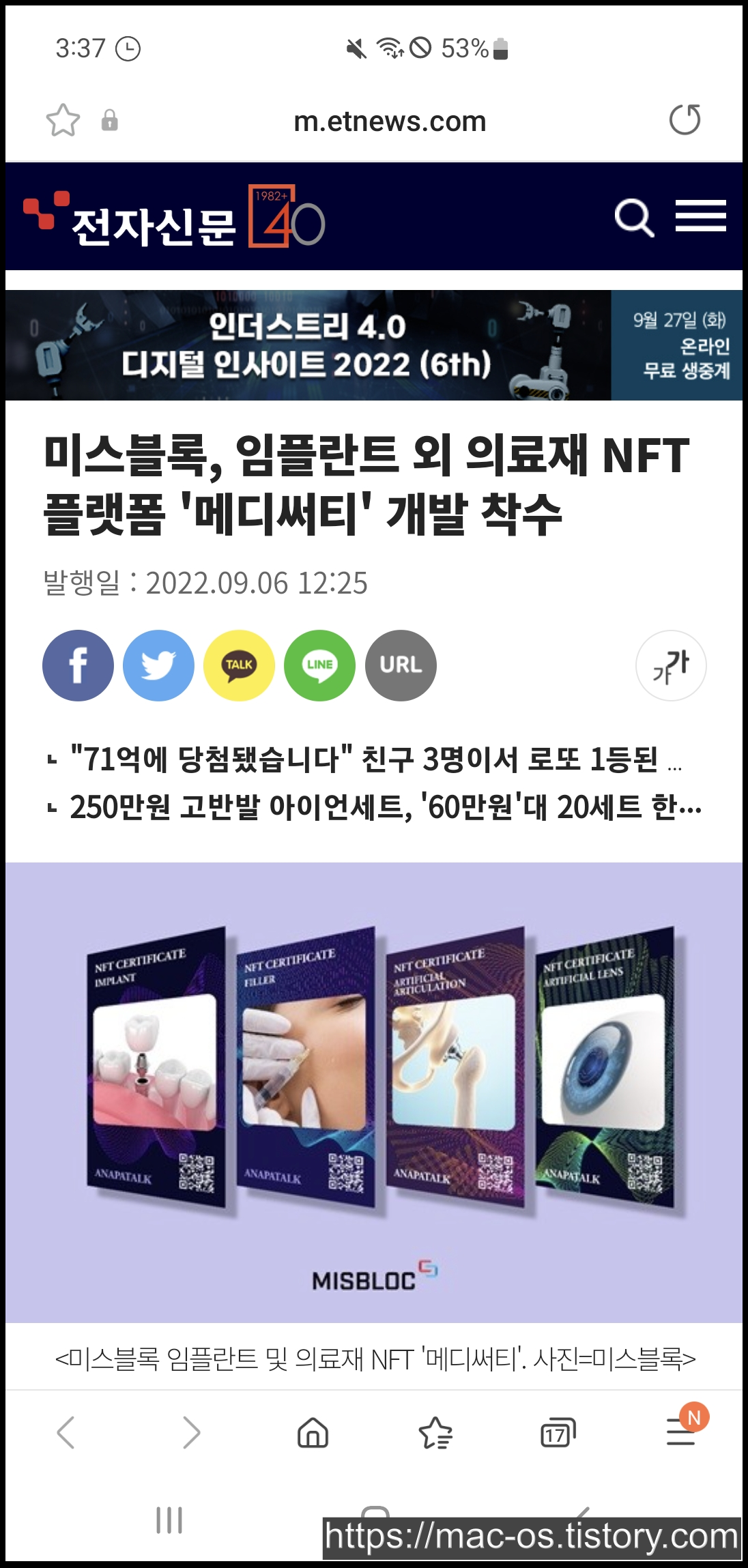 조금 뒤져보니 9월에 발행된 기사가 하나 있었습니다. 기사를 살펴보면 미스블록 대표가 메디써티라는 NFT 플랫폼을 개발한다고 하는데요.