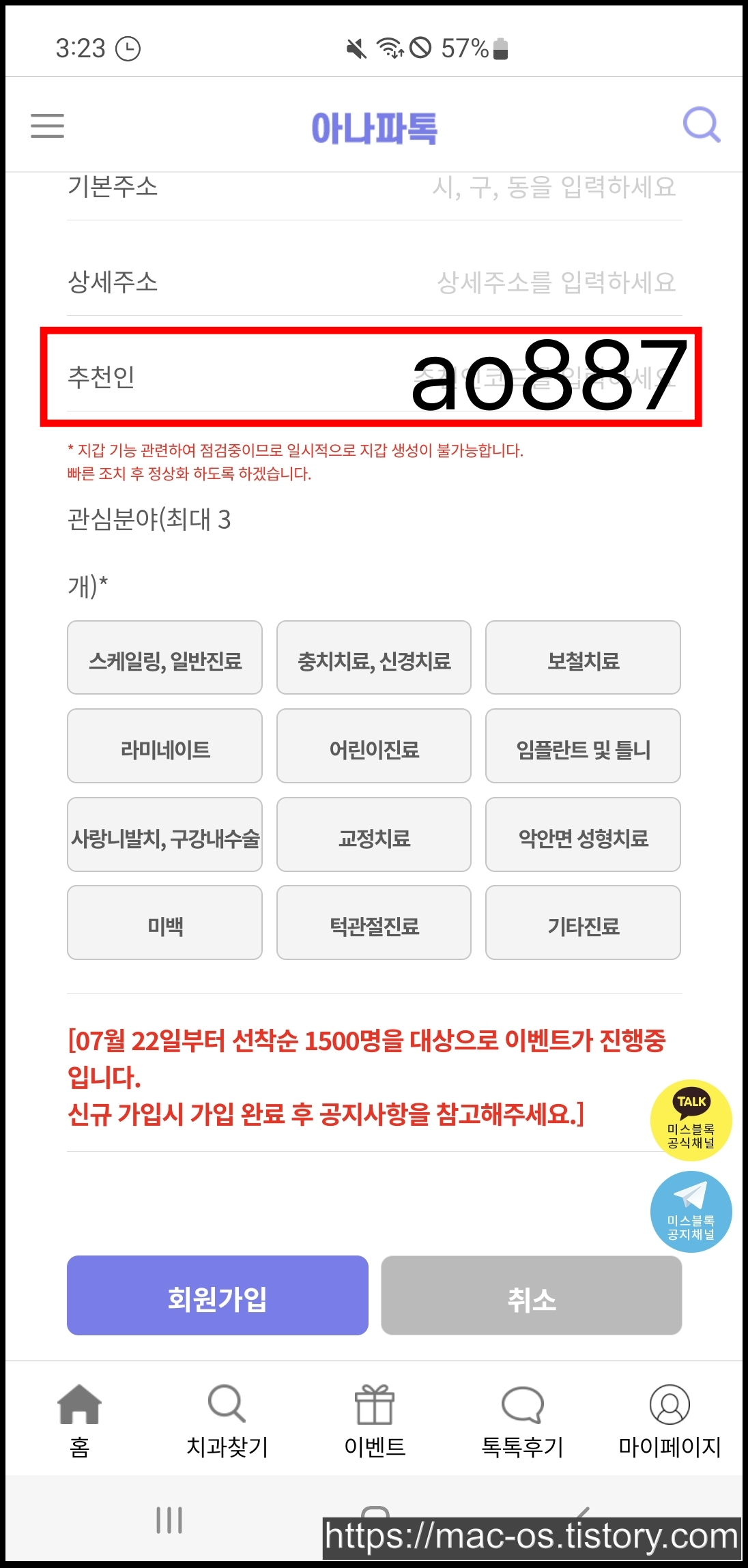 회원가입 페이지에서 추천인을 등록할 수 있습니다. 추천인을 꼭 입력해 주세요~!
