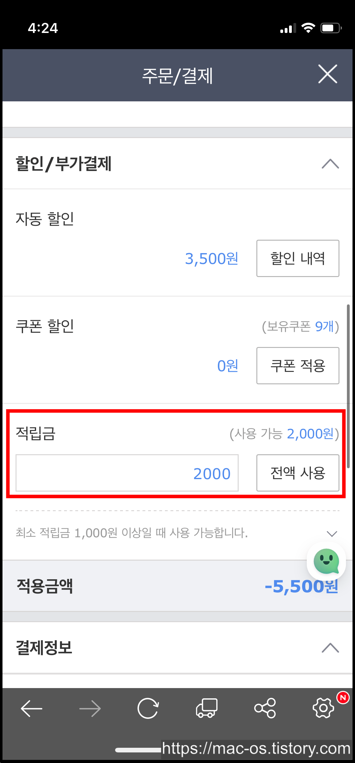 아무 상품이나 하나 선택해서 결제 페이지로 이동해봤더니 적립금으로만 전액 사용이 가능한 것 같더라구요.