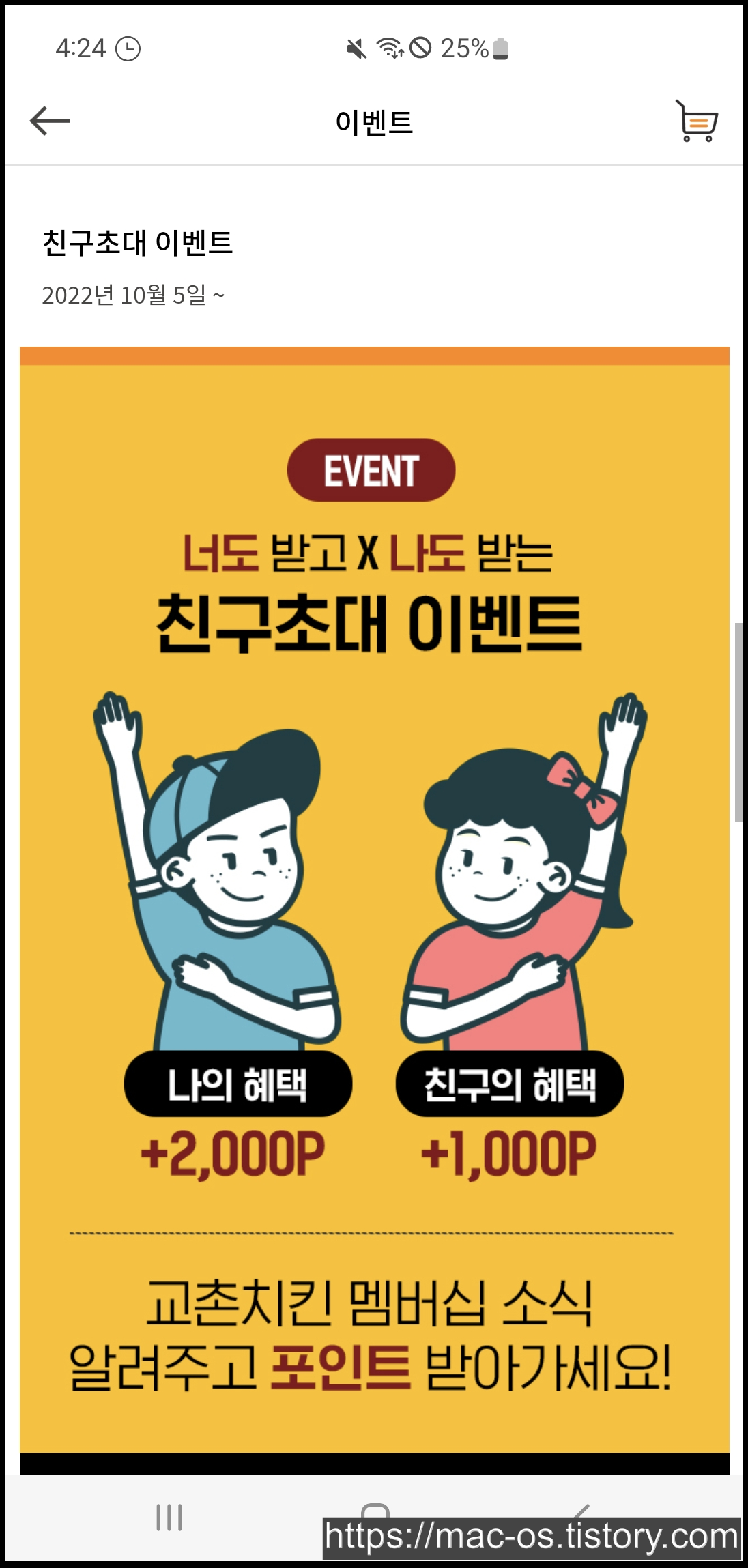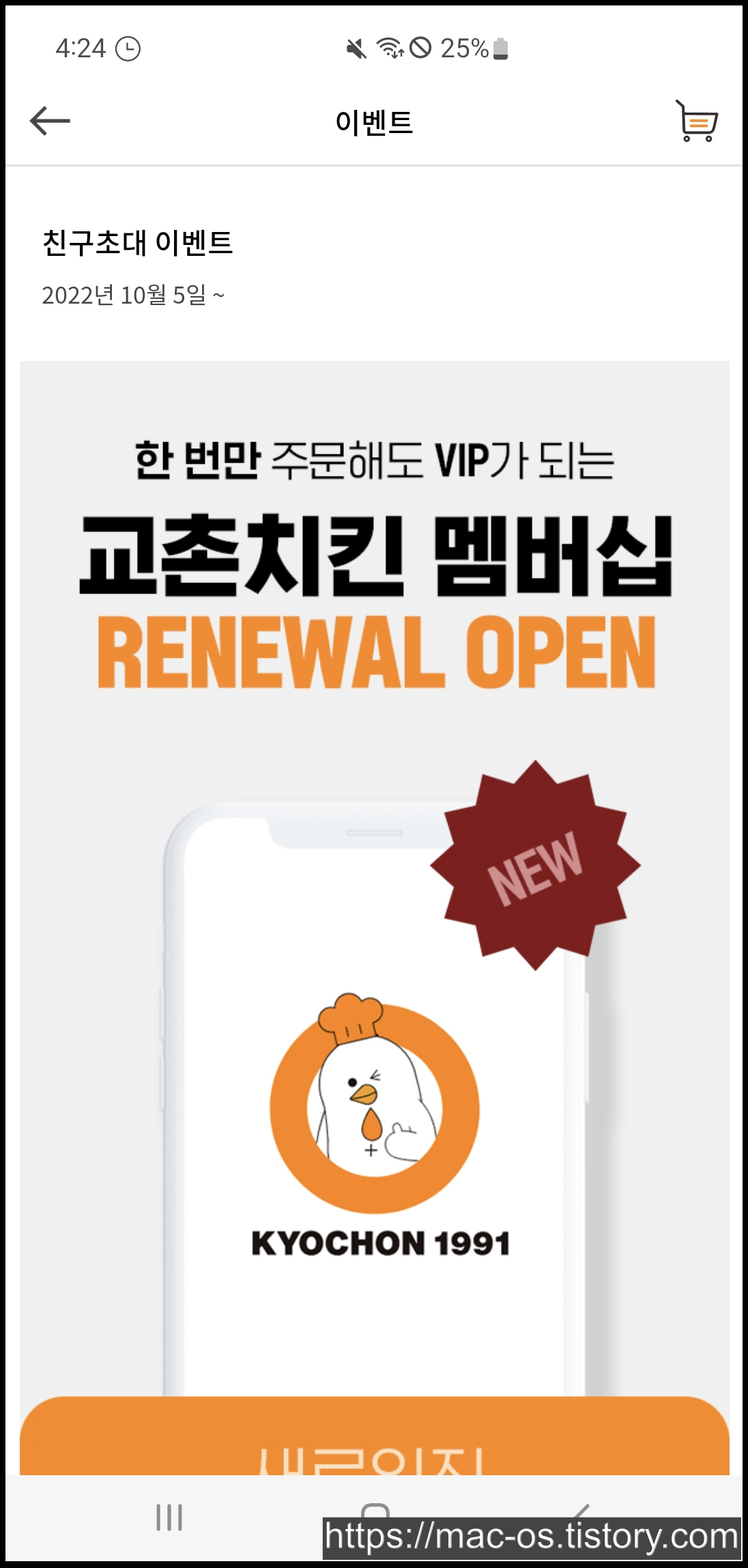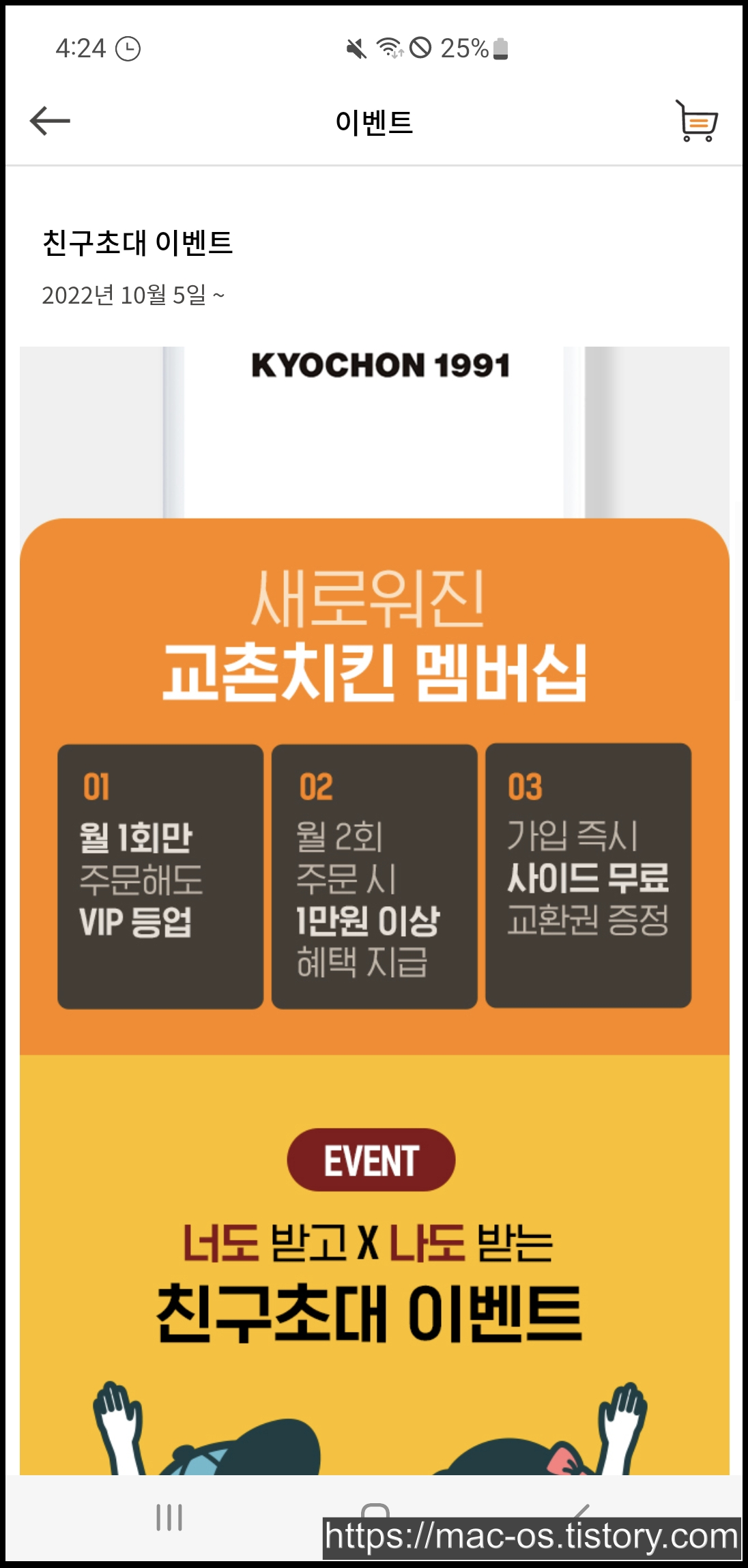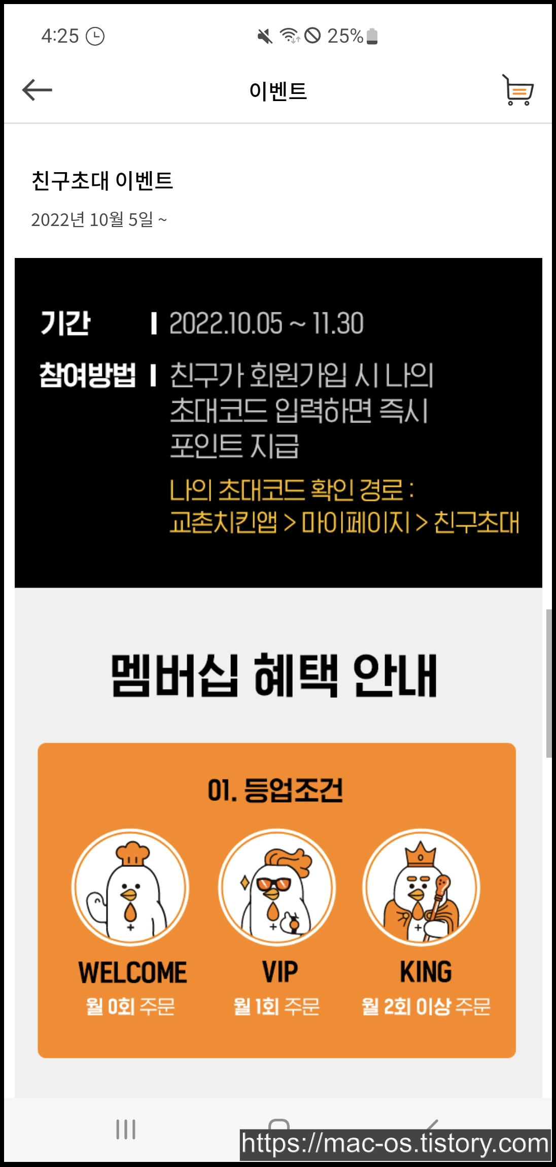교촌치킨에서 2022년 10월 5일부터 진행하는 친구초대 이벤트입니다. 교촌치킨 멤버십이 새로 변경되었다고 하는데요.
