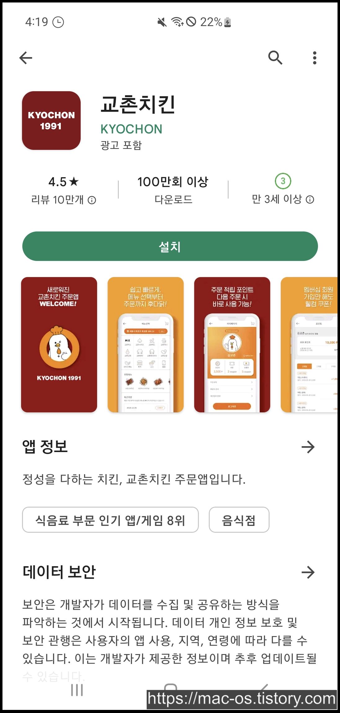 교촌치킨 앱 리뷰