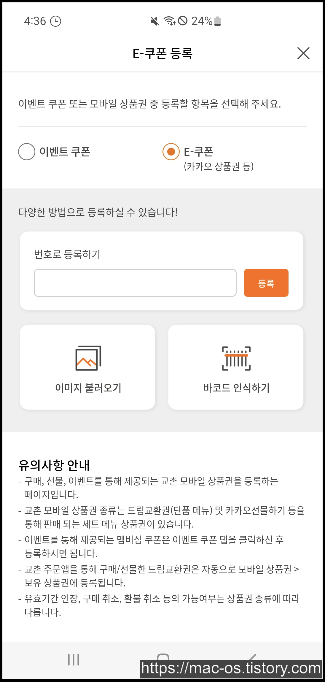 [등록]을 누른다고 해서 기프티콘이 바로 사용되는 것이 아니라서, 해당 쿠폰이 사용된 건지 사용되지 않은 건지 확인할 때 사용하셔도 좋습니다.