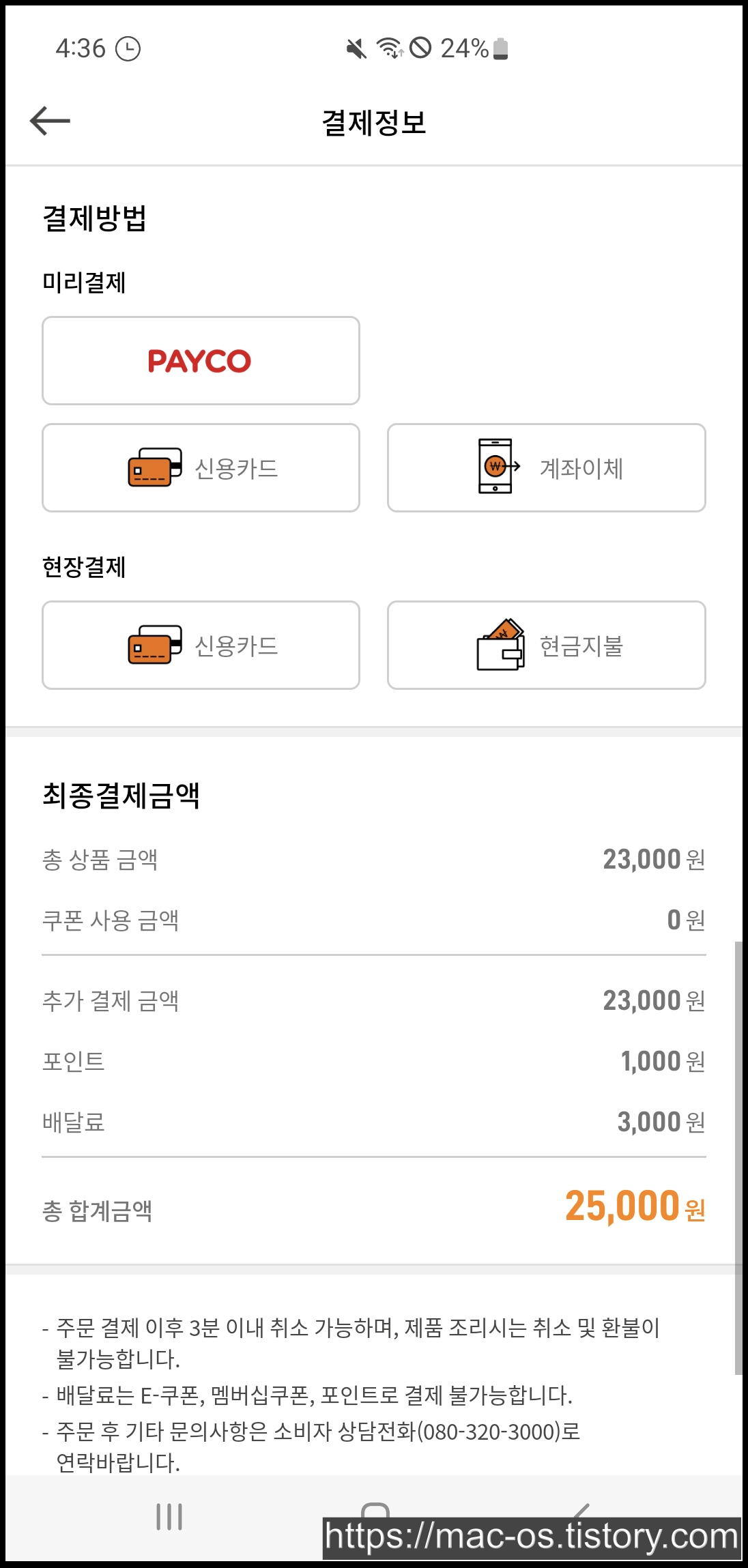 배달료는 페이코, 신용카드, 계좌이체로 미리결제하실 수 있으며, 신용카드나 현금지불을 통해 현장결제도 가능합니다.