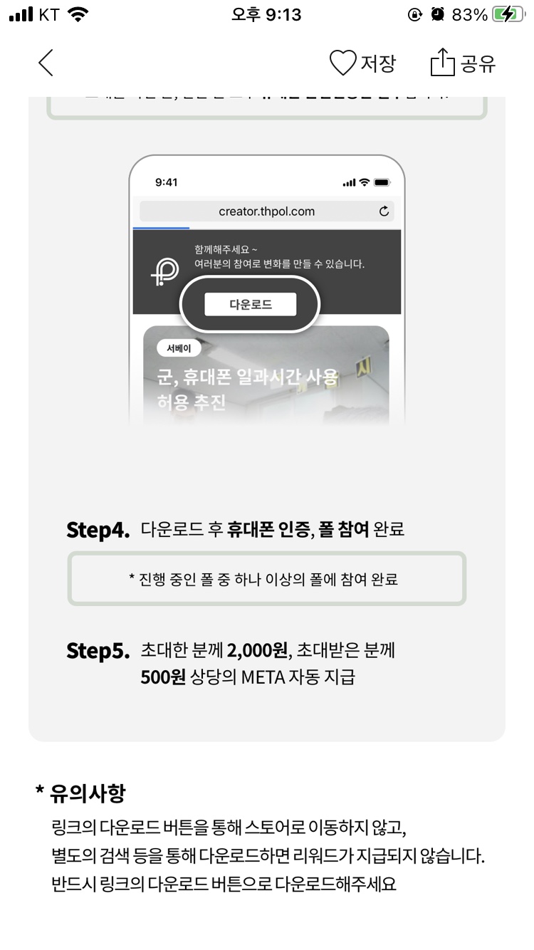 | 5. 폴 1개에 응답 완료한 경우, 초대자에게 2,000원 상당의 META, 친구에게 500원 상당의 META를 지급한다. |