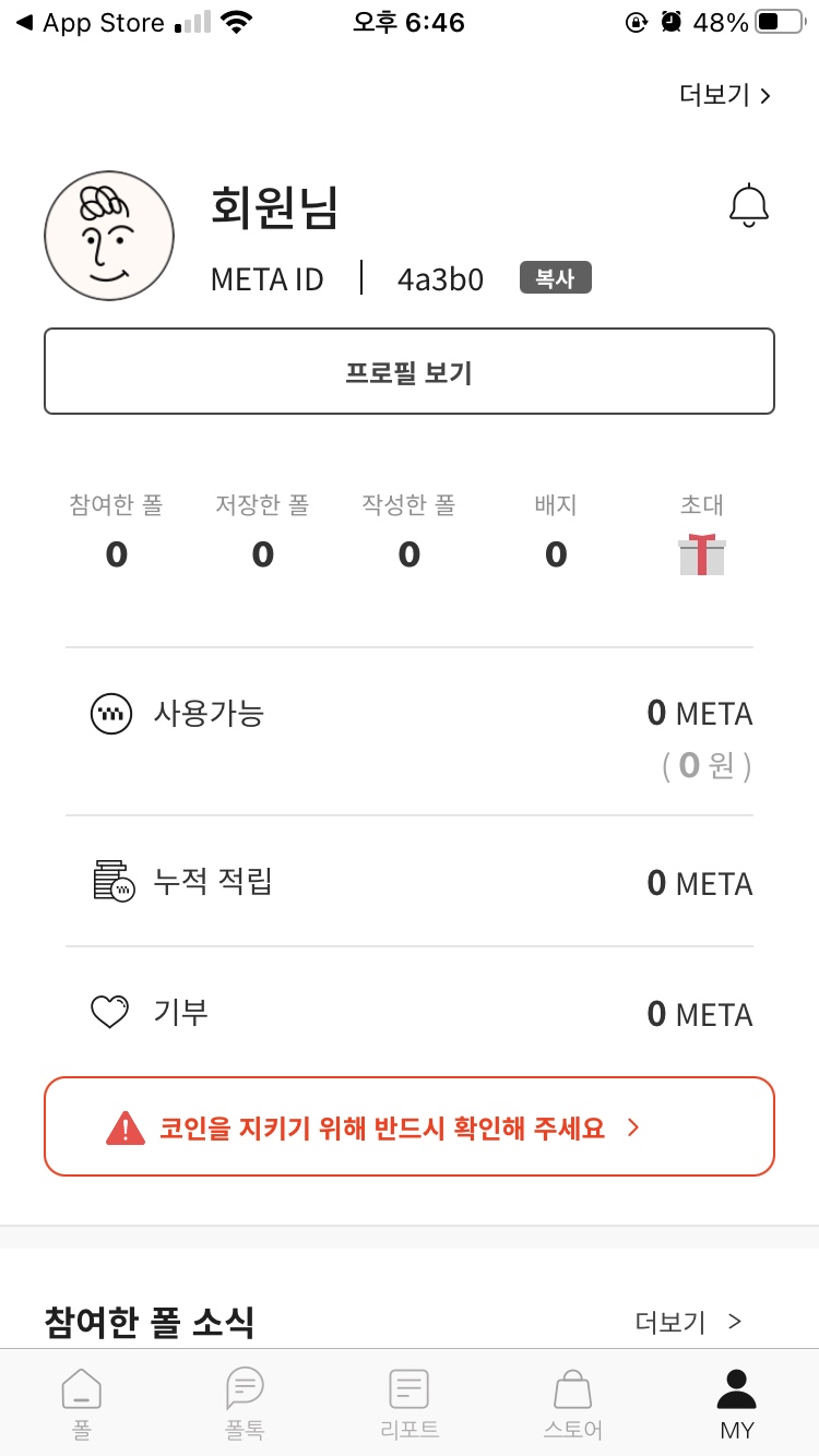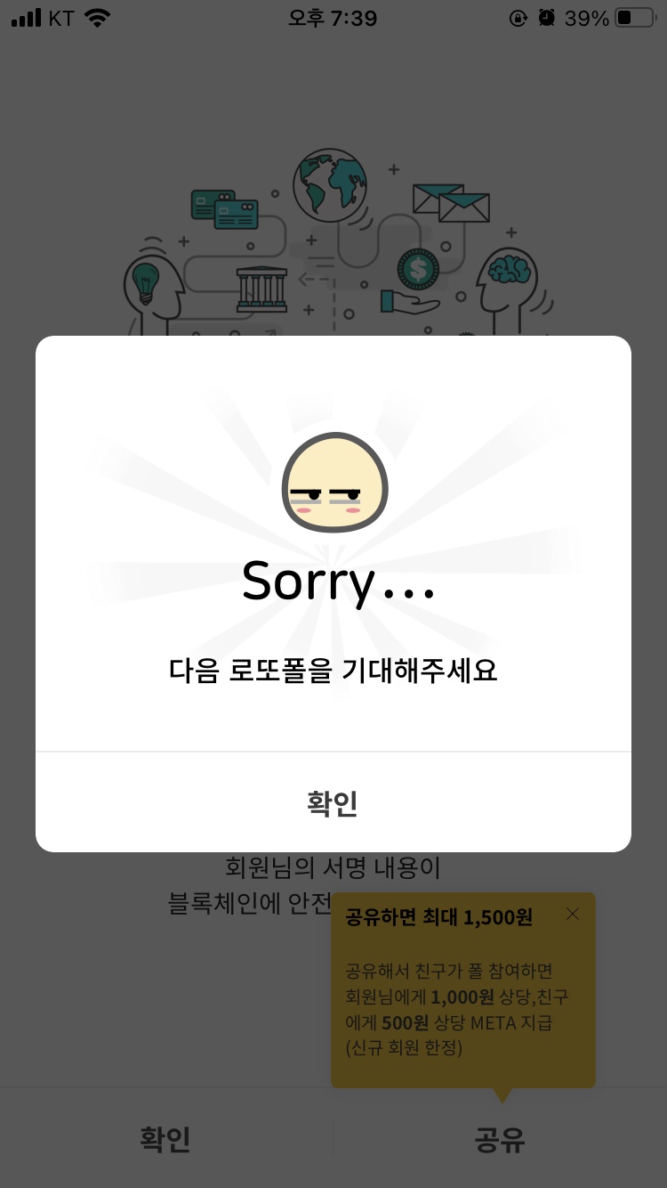 마음에 드시는 폴을 선택하여 참여해보세요. 위의 초대링크를 통해 여기까지 따라오신 분의 경우, 진행중인 폴 1개를 참여 완료하시면 500원 상당의 META가 추가로 지급됩니다.