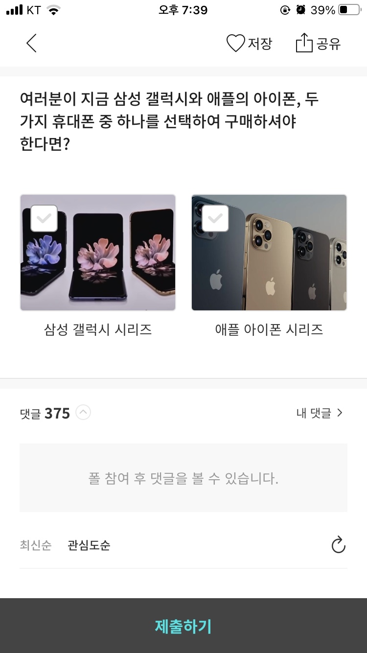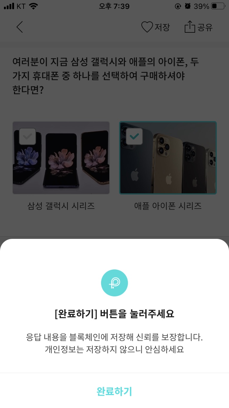 | 4. 휴대폰 본인 인증 후, 진행중인 폴에서 1개 폴에 참여한다. |