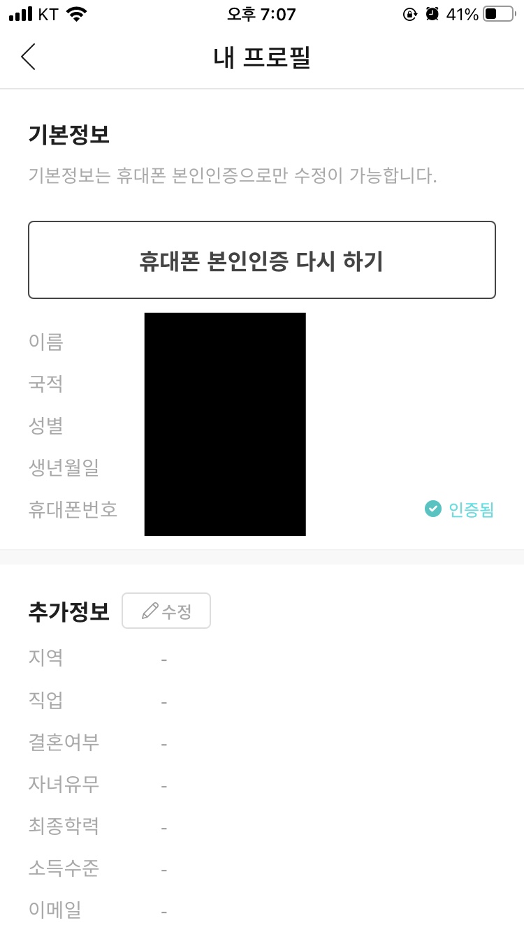그리고 아래에 추가정보를 수정하실 수 있는데요. 추가정보를 입력한다고 해서 추가로 리워드를 지급해주지는 않으니 굳이 입력하실 필요는 없다고 생각합니다.