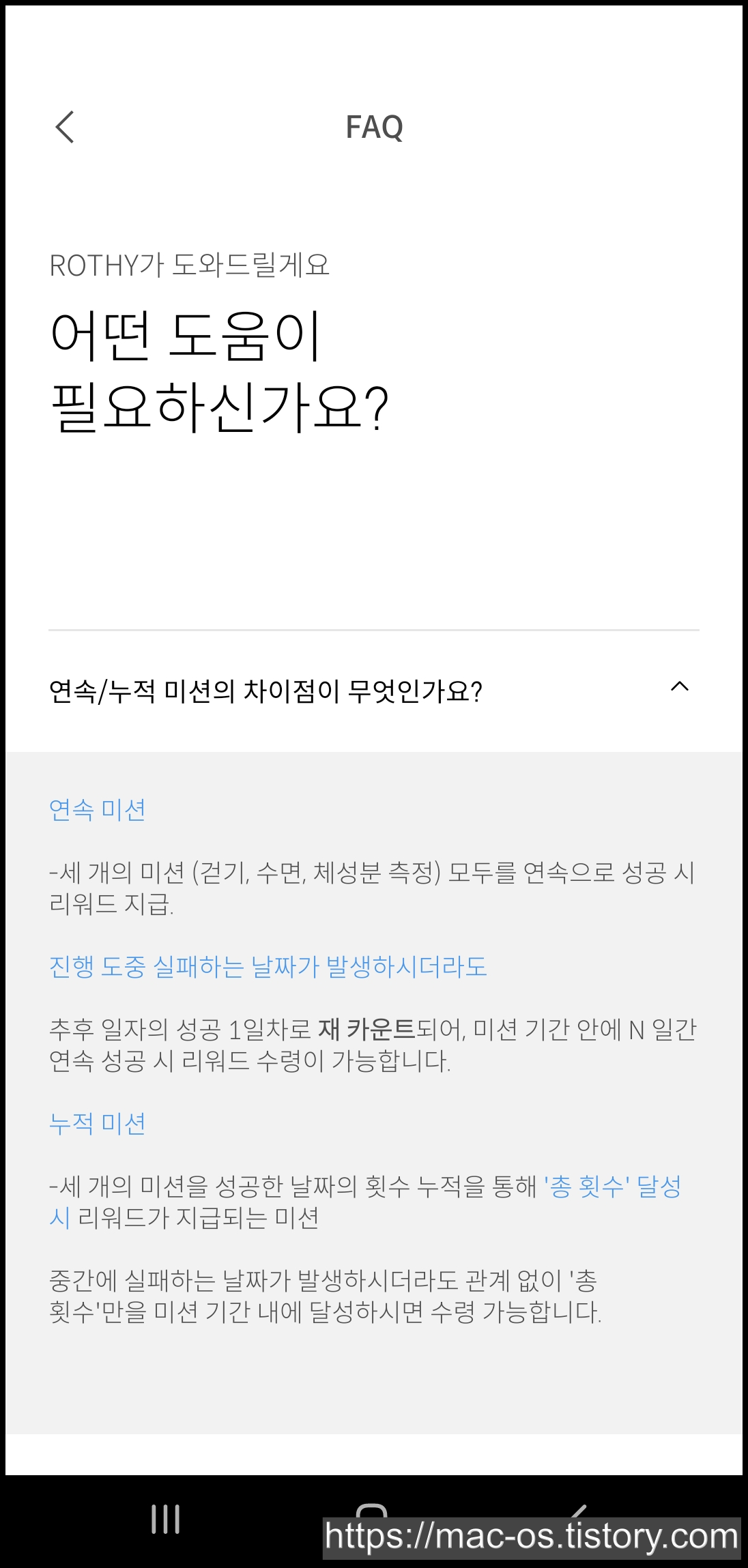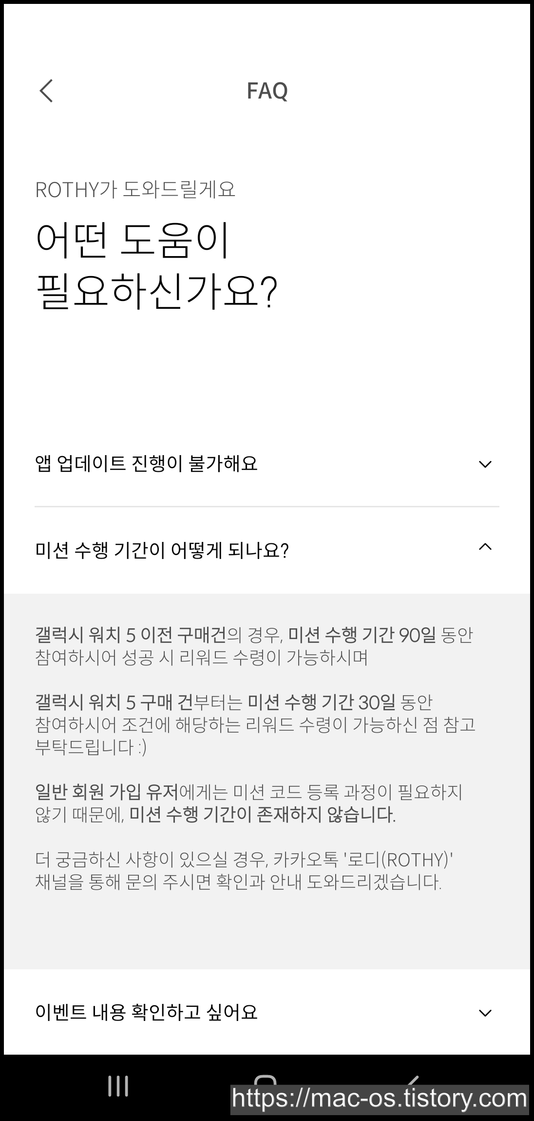 연속 미션과 누적 미션의 차이점에 대해서도 설명해주고 있구요. 미션 수행 기간을 살펴보면 갤럭시 워치4 뿐만 아니라 5도 해당되는 것 같네요.
