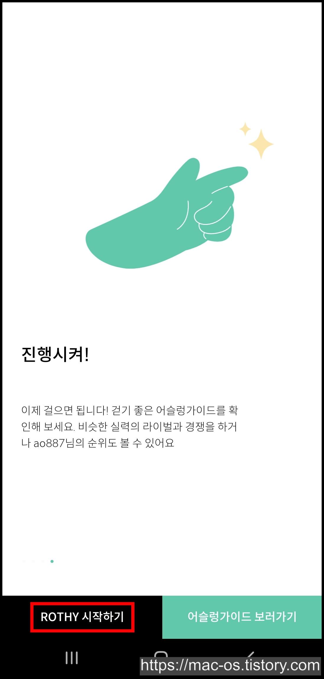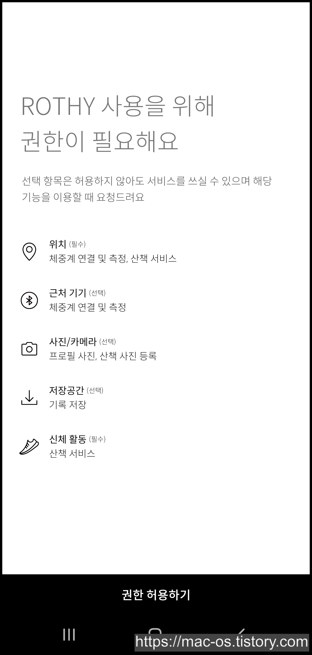 [ROTHY 시작하기]를 누르고 권한을 마저 허용해줘요.