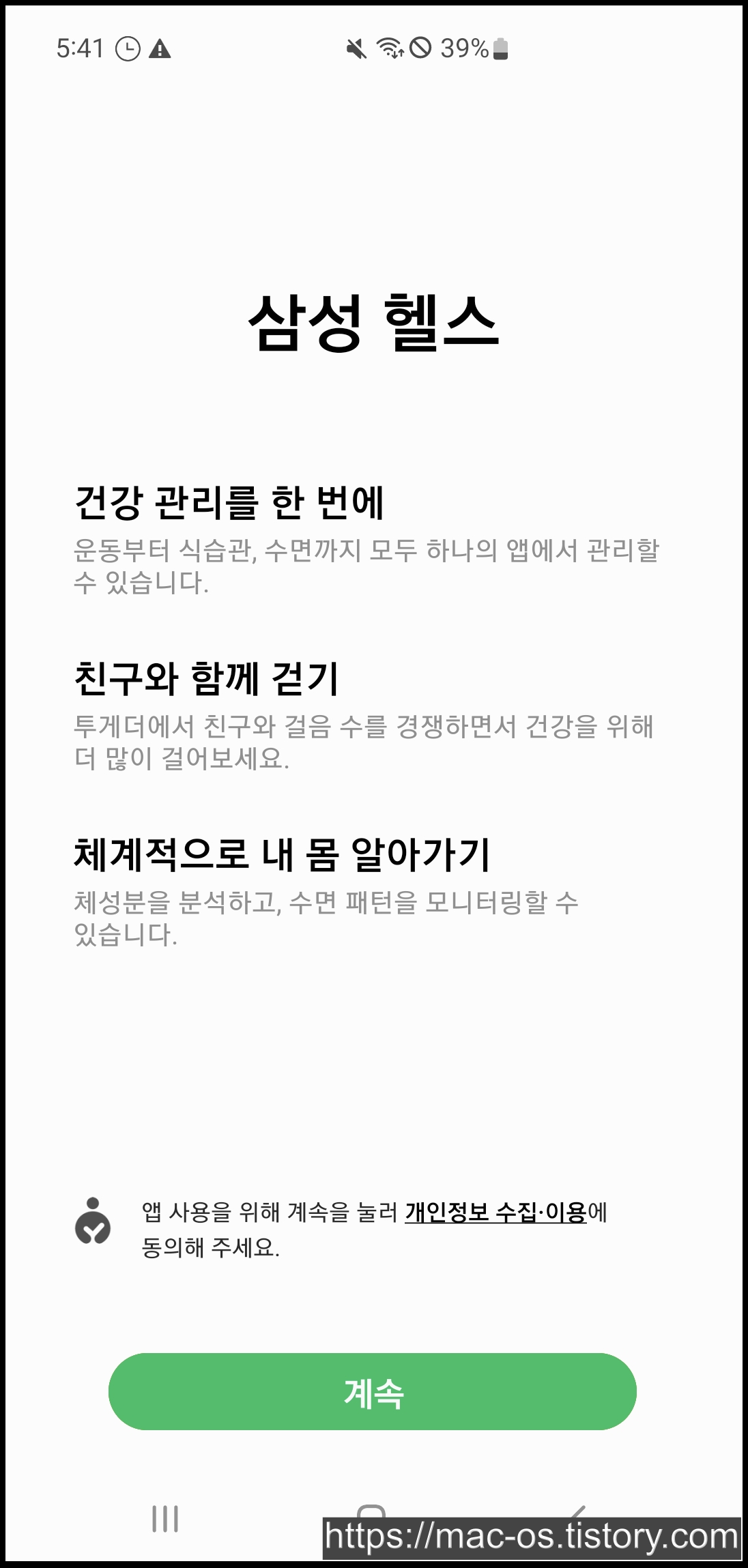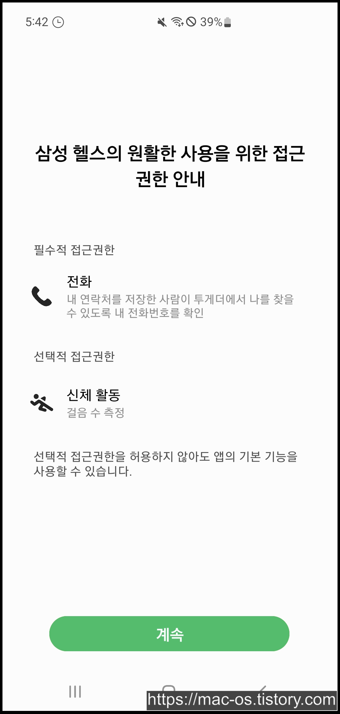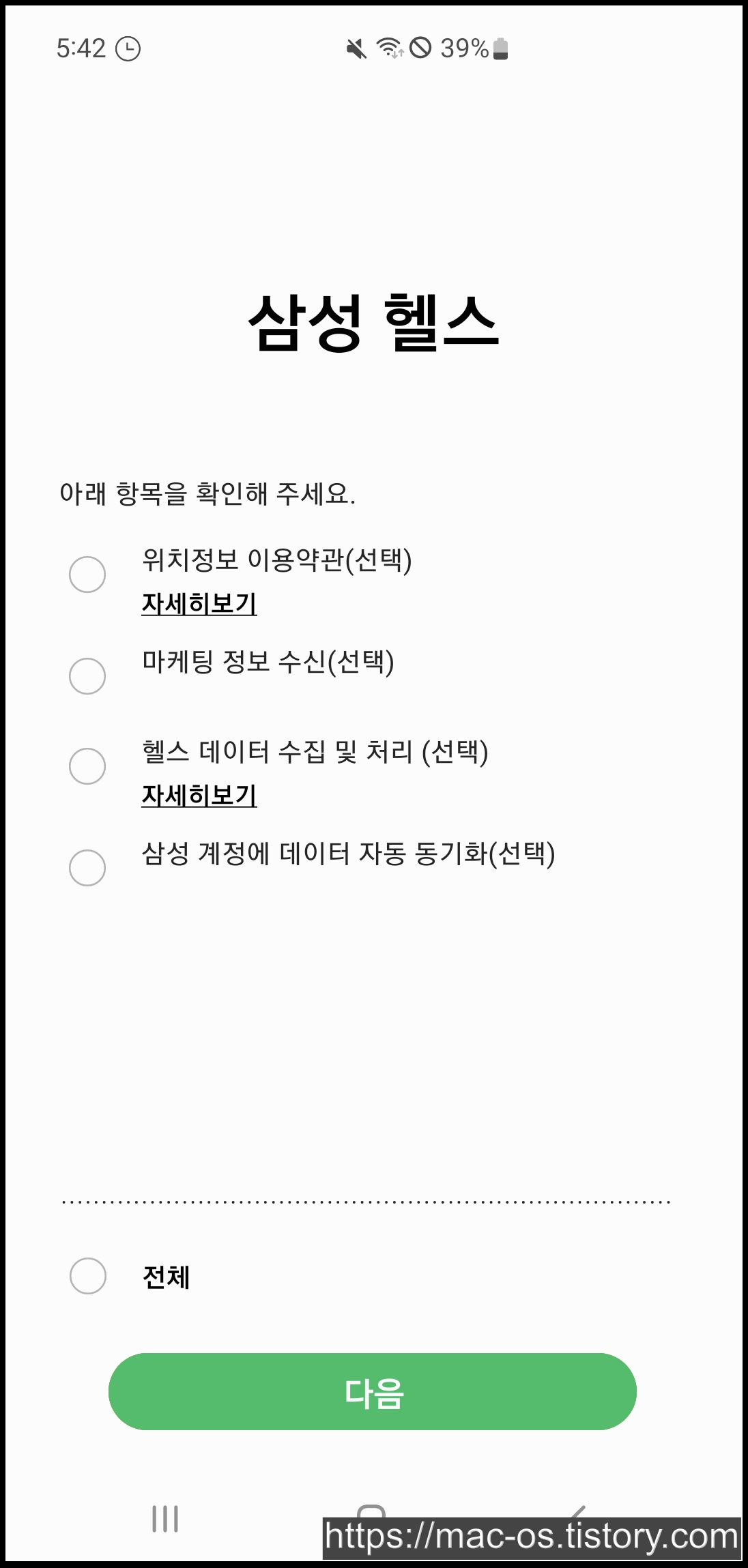 삼성헬스 활성화를 위해 계속 버튼을 연타해줍니다.