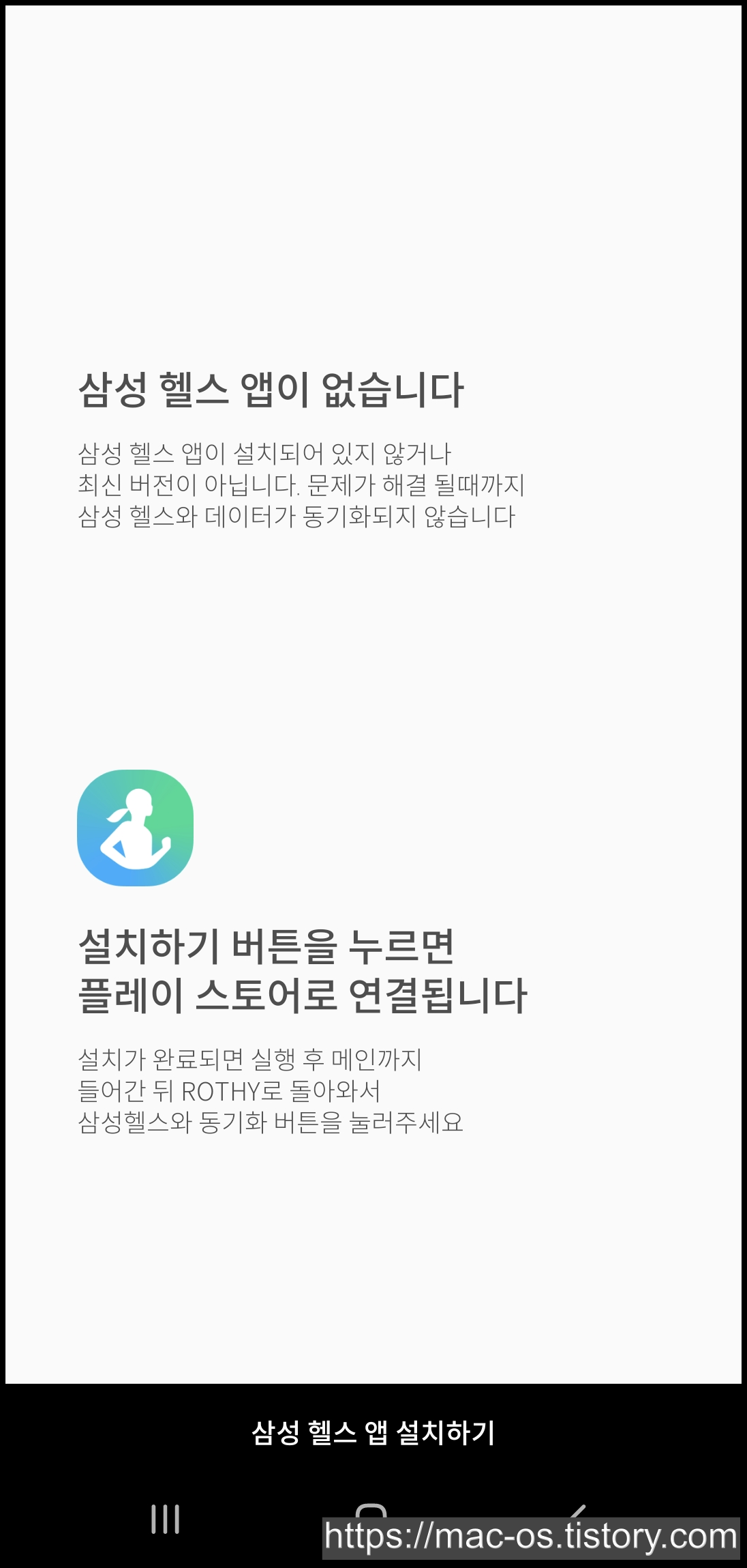 로디 앱과 삼성헬스 앱을 연동해줘야 하는데요. 저는 예전에 삼성헬스를 지운 적이 있어서.. 다시 설치했어요.
