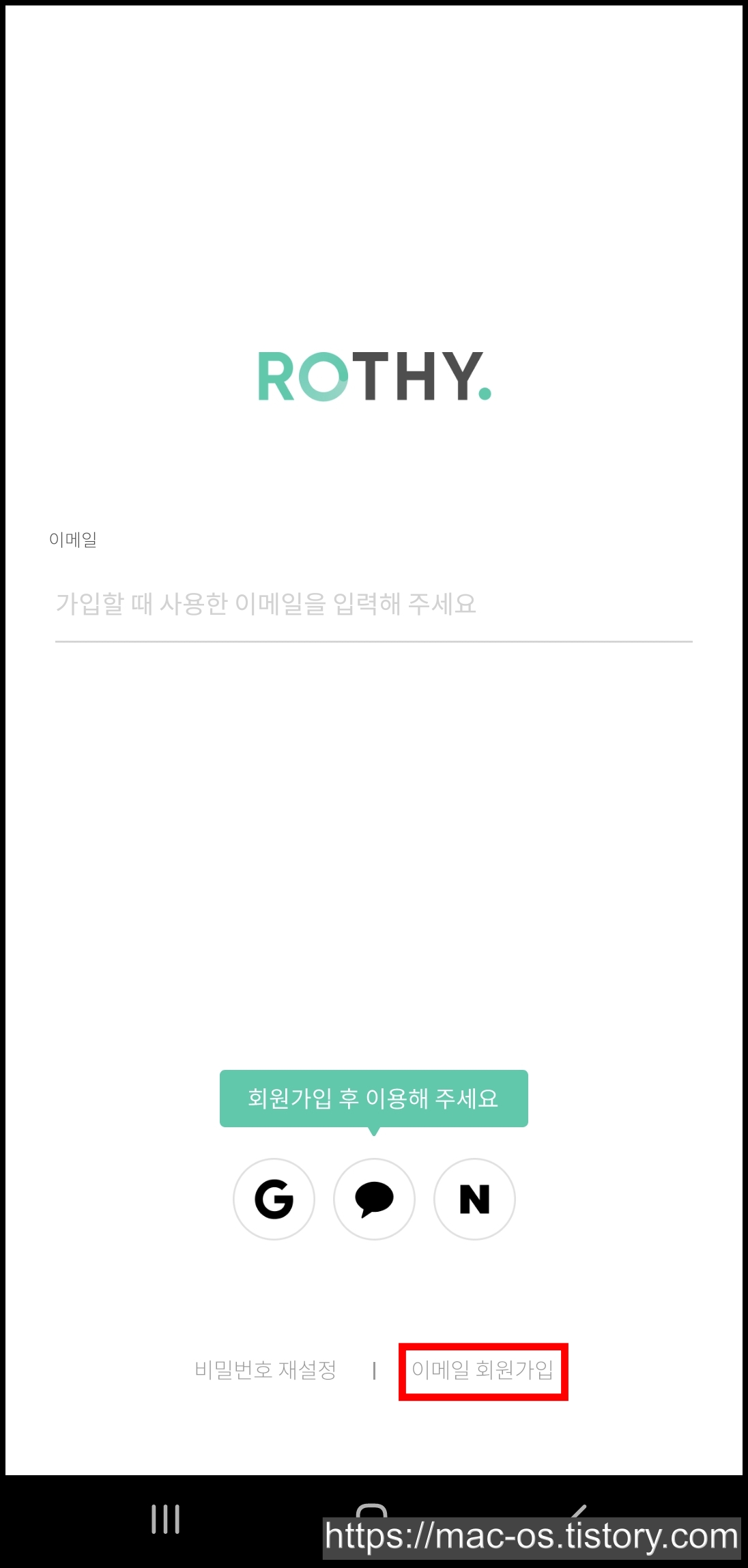 로디는 구글, 카카오, 네이버 계정으로 간편 로그인하거나 이메일로 회원가입하실 수 있습니다. 저는 이메일로 가입하겠습니다.