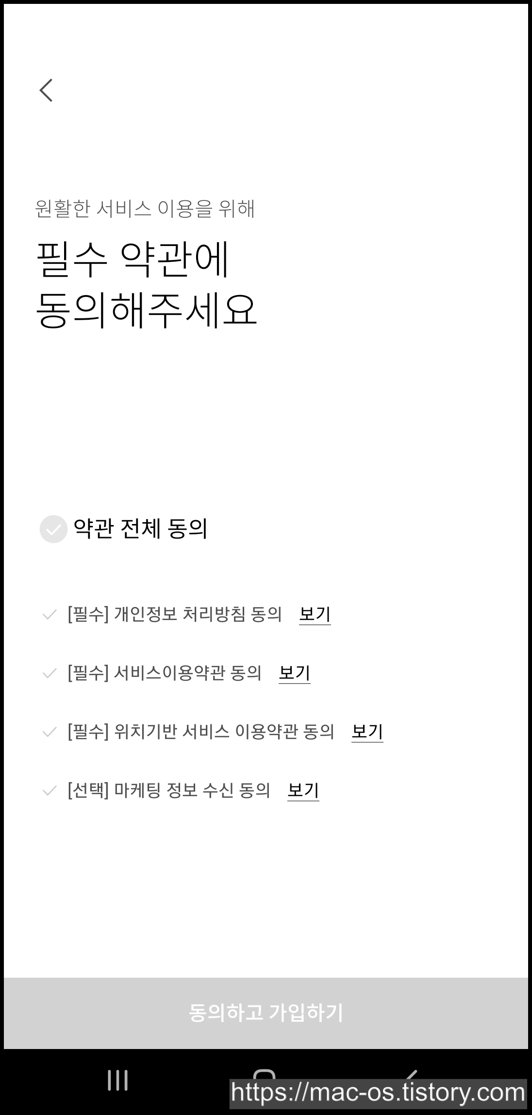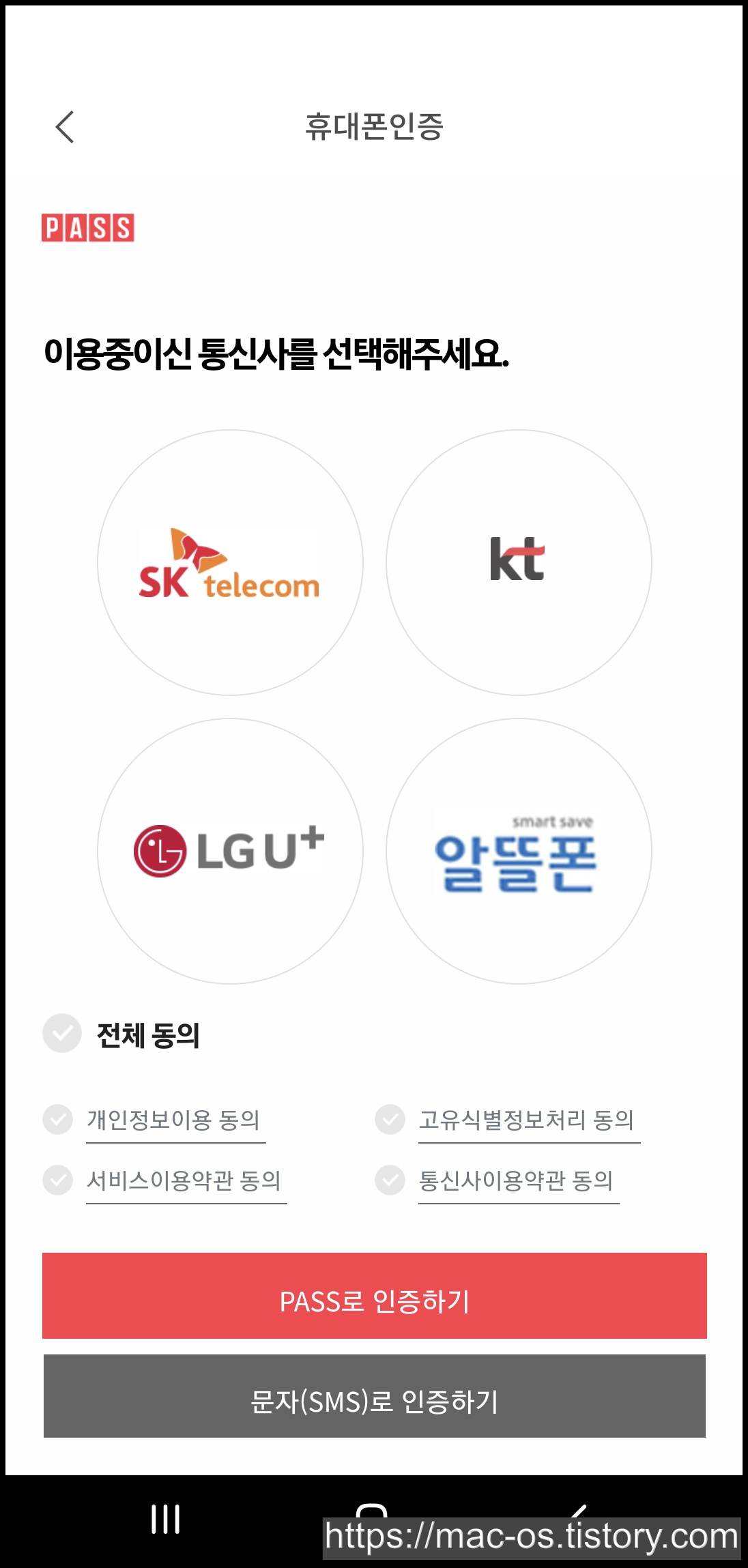 이메일 회원가입을 누르면 휴대폰 본인인증 절차 후 약관동의 페이지로 이동하게 됩니다.