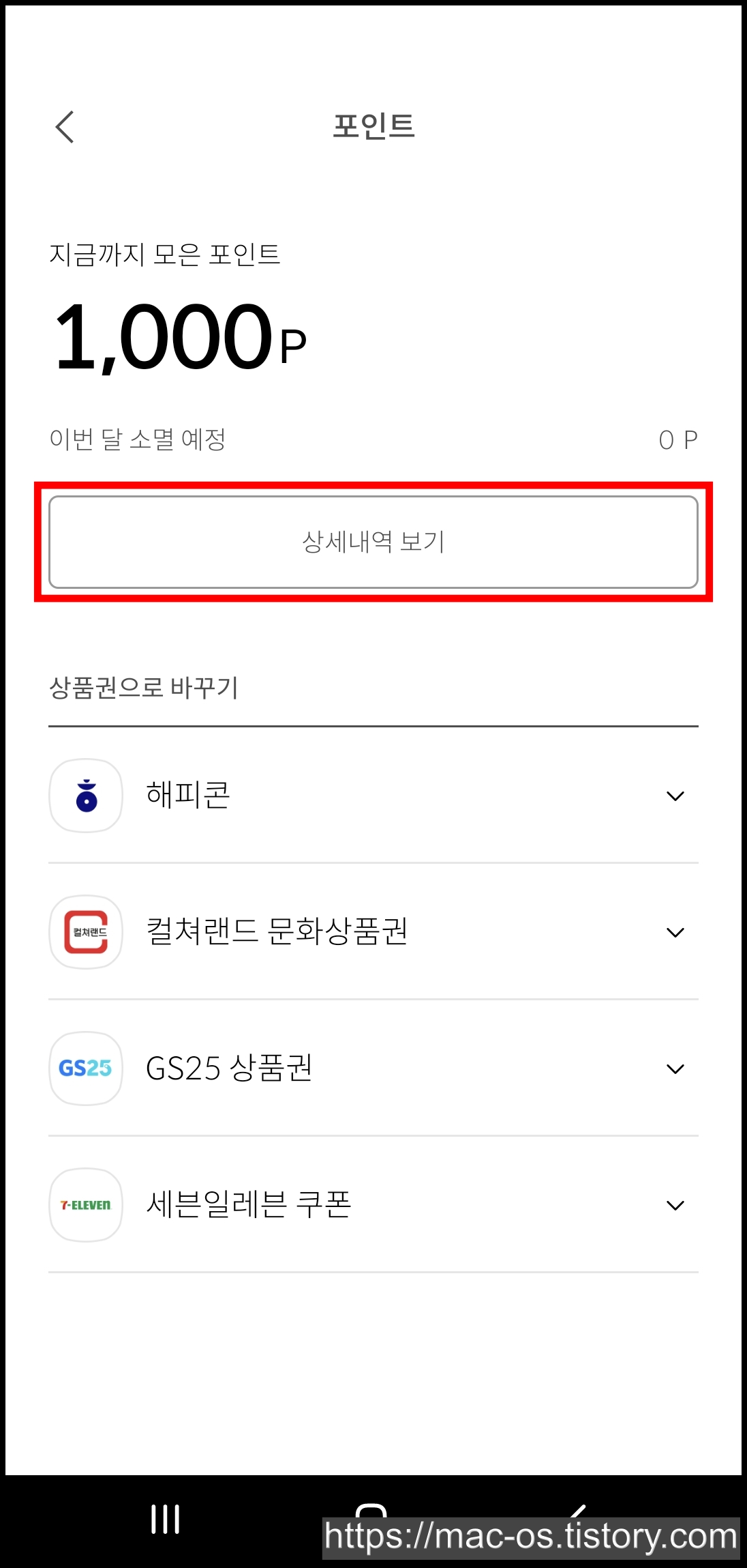 현재 가입할 때 추천코드를 입력하면 1,000포인트를 얻을 수 있는데요. 이걸로 바로 편의점 상품권 1,000원권을 구매하실 수도 있습니다.