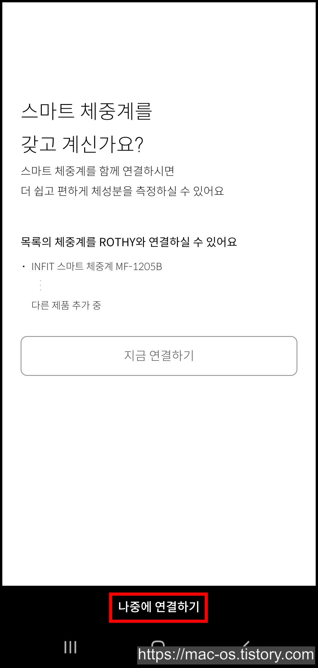 스마트 체중계를 갖고 있는 경우 로디 앱과 연동하셔도 되구요. 저는 없어서 스킵했어요.