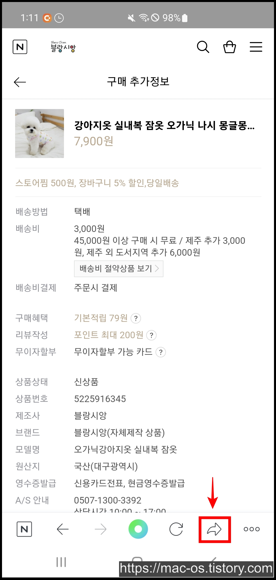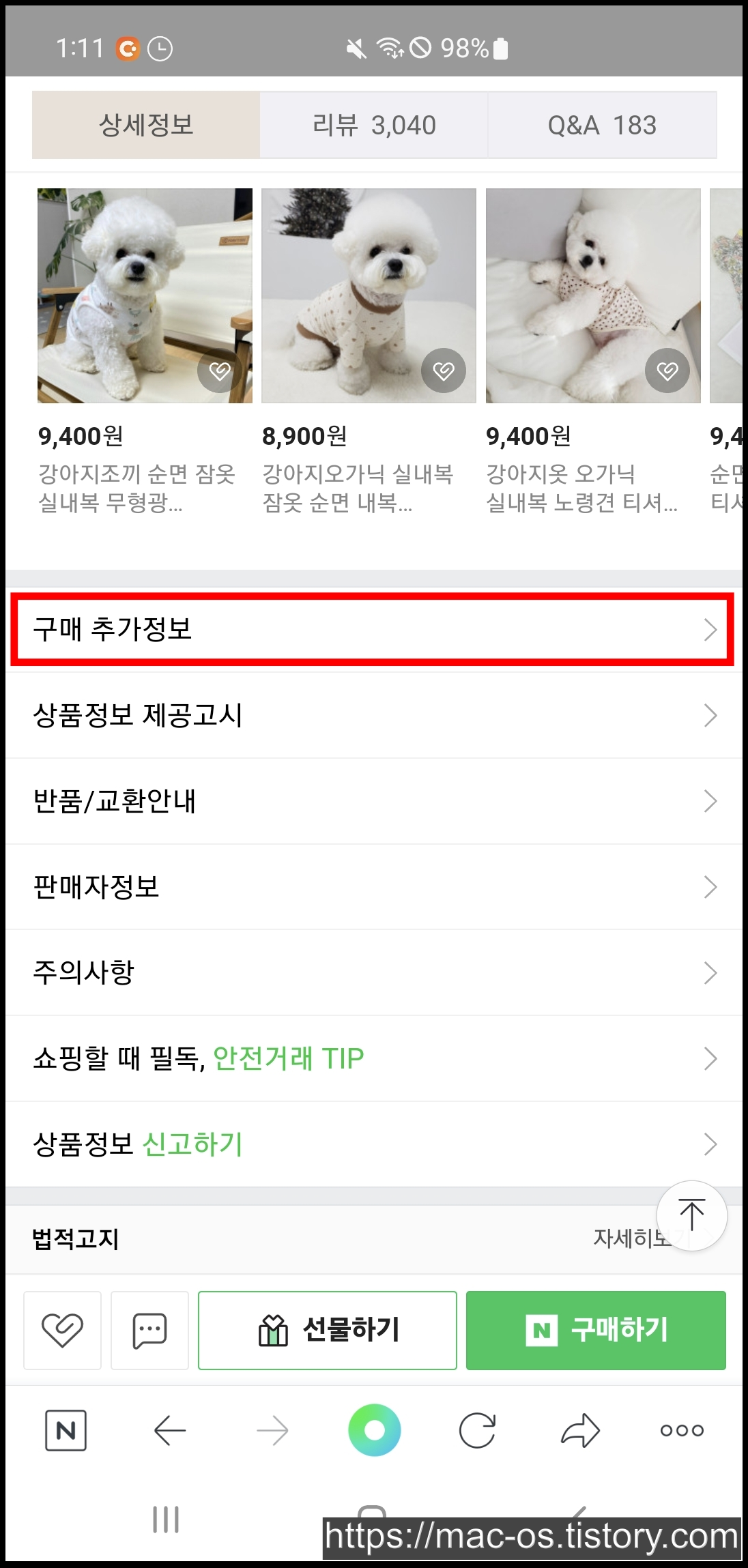 [구매 추가정보]를 누르고 우측 하단의 화살표 버튼을 클릭해요.