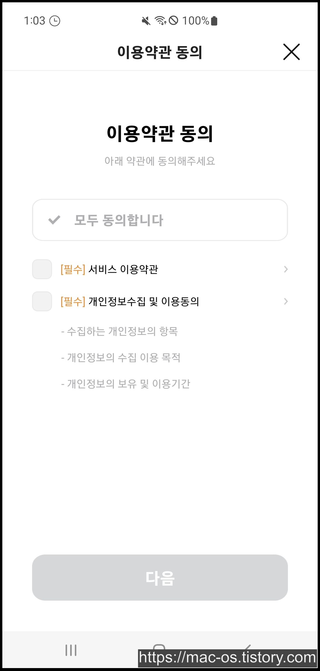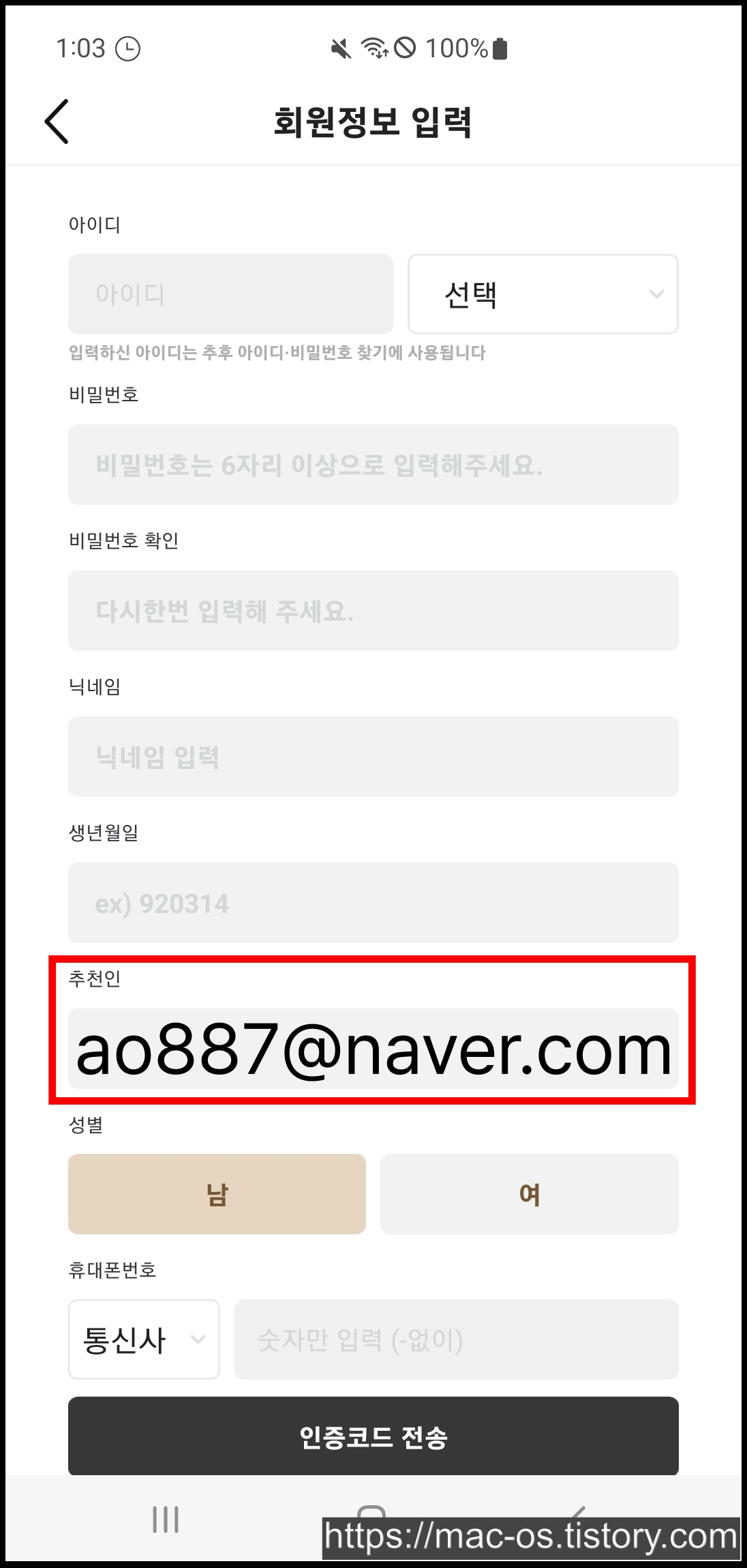 이용약관에 동의하고 회원정보를 입력해주세요. 참고로 여기서 추천인을 입력하시면 100포인트를 받으실 수 있어요.