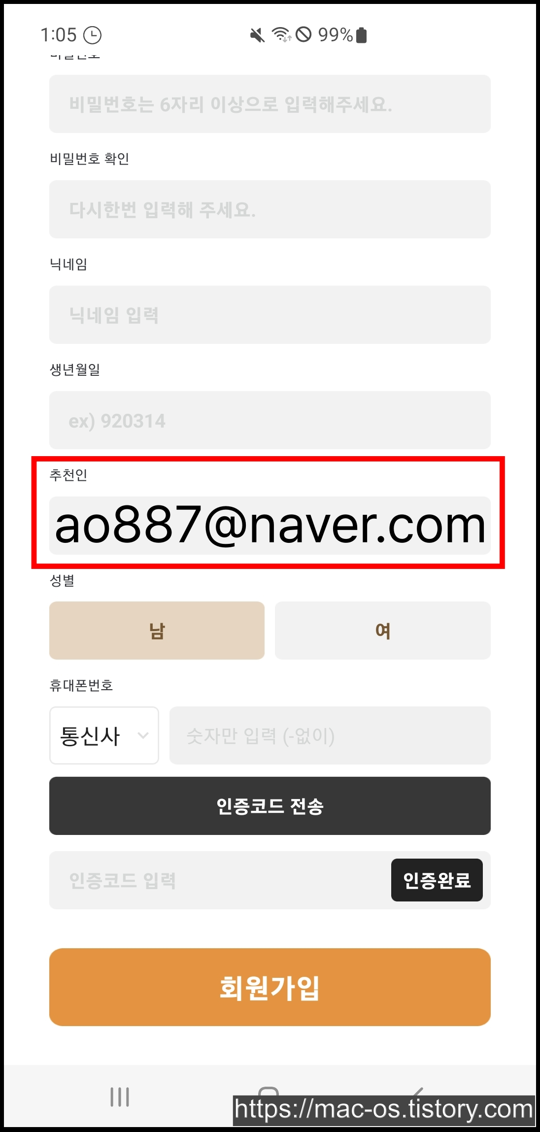 현재 회원가입 페이지에서 추천인 아이디를 입력하실 수 있는데, 여기에 ao887@네이버.com을 입력하시면 100포인트를 추가로 받고 시작하실 수 있습니다.