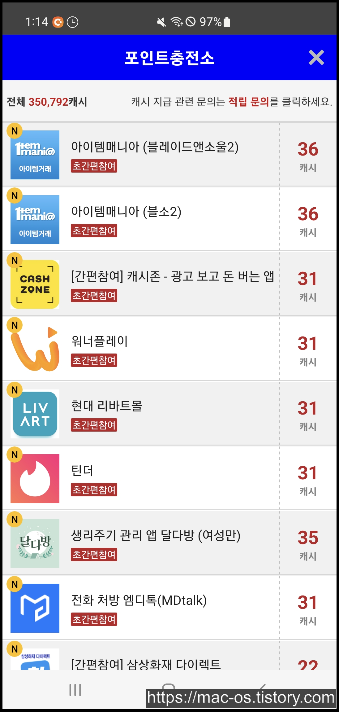 제휴미션은 총 4개가 있는데요. 대충 보니까 3번째 포인트충전소가 제일 괜찮은 것 같네요.