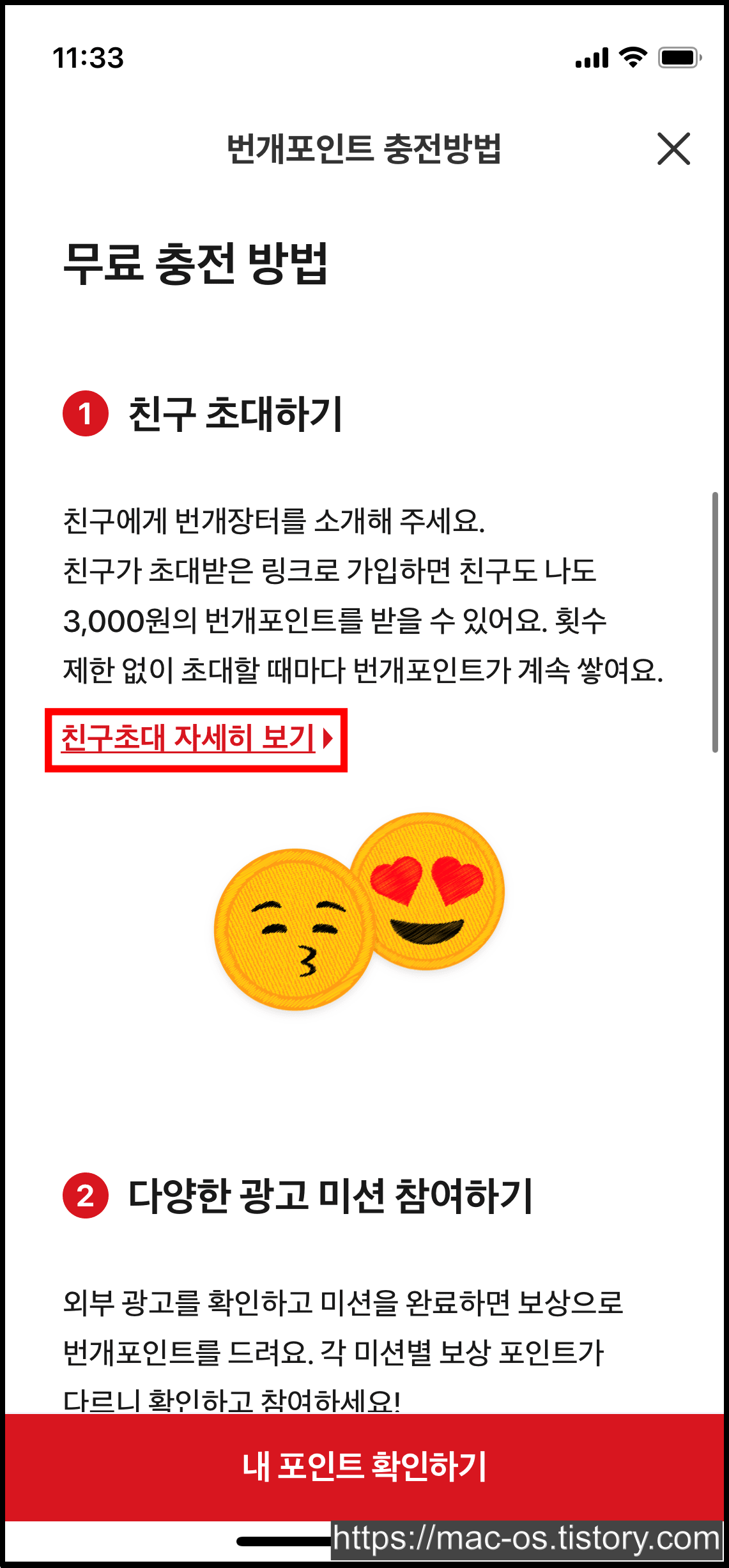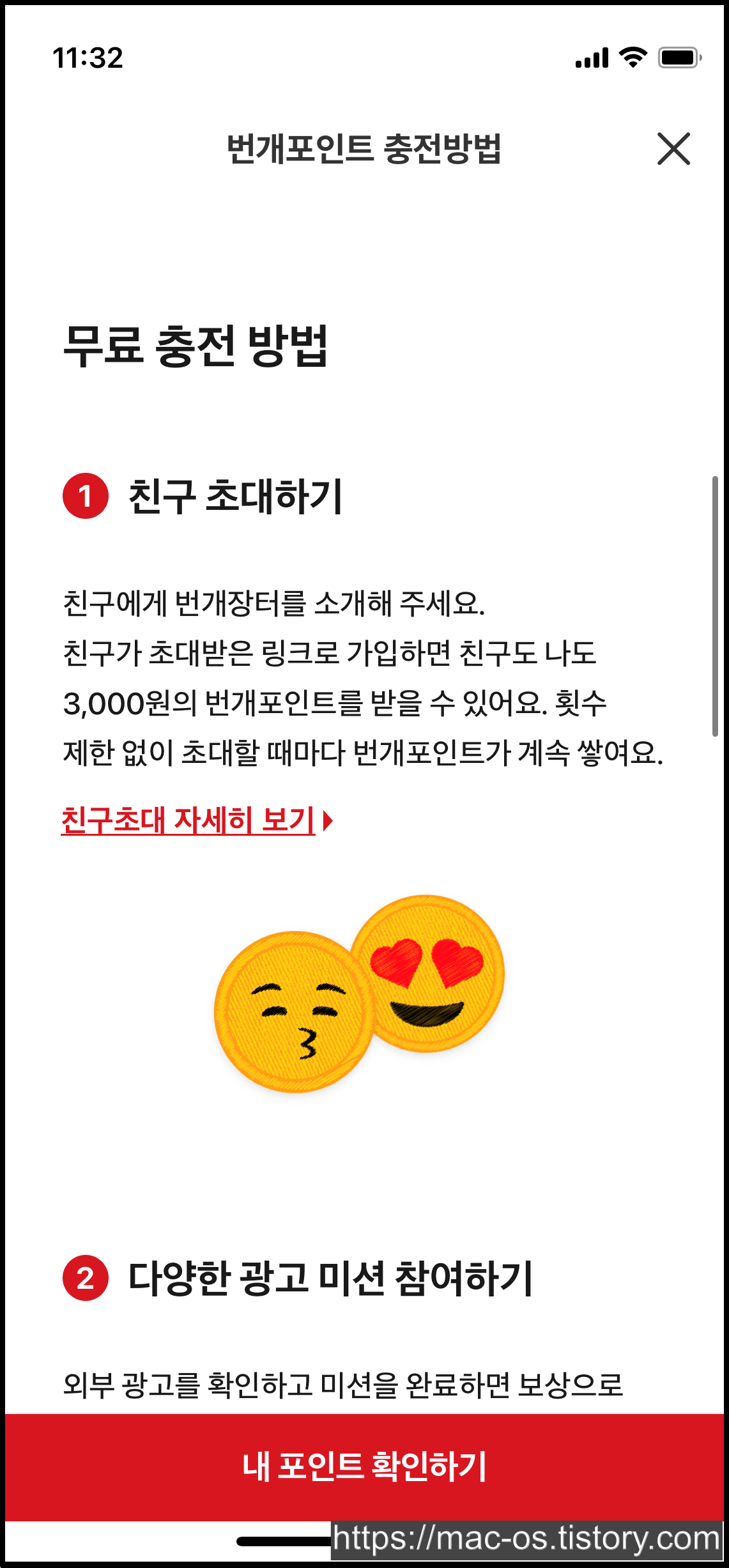 번개포인트는 어떻게 얻을 수 있는 것인지 살펴봤습니다. 우선 친구초대와 광고미션, 이벤트 등으로 얻을 수 있다고 하는데요.
