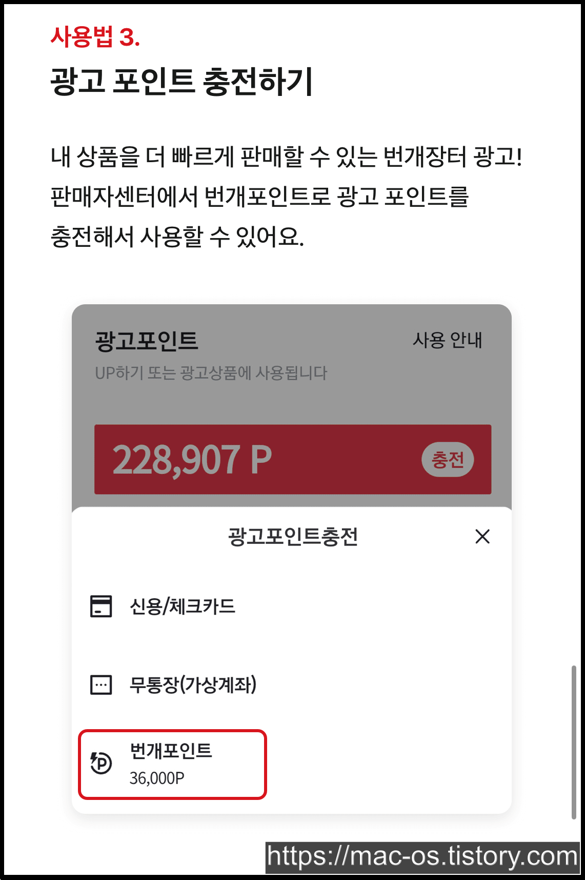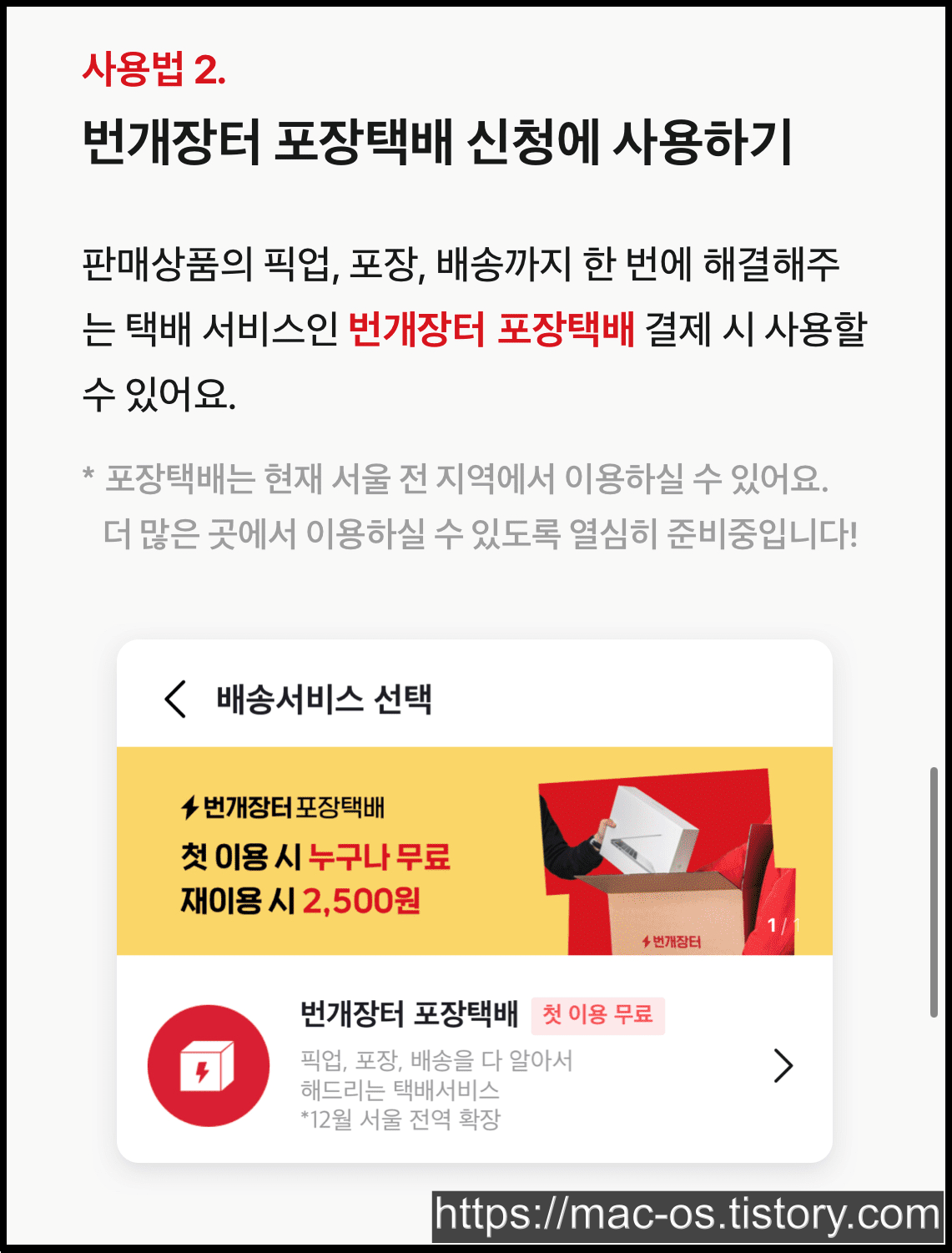번개포인트는 번개페이 안전결제 뿐 아니라 포장택배, 광고 포인트 충전에 현금처럼 사용할 수 있다고 하네요.