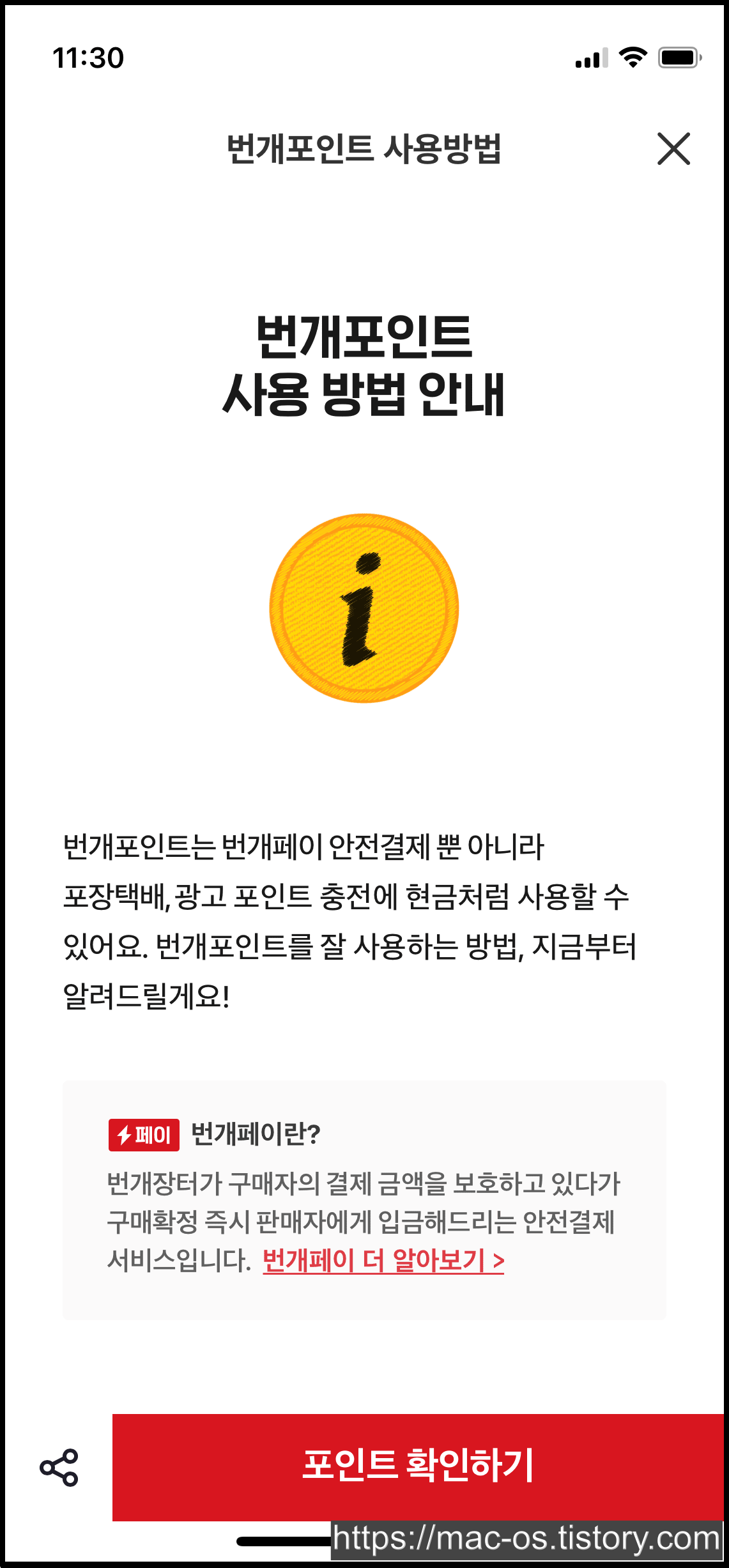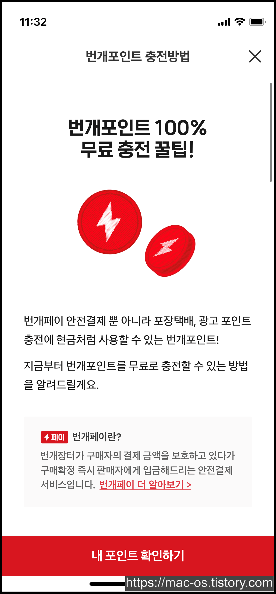 [MY] > [번개포인트] > [번개포인트 사용 방법 안내]로 이동합니다.