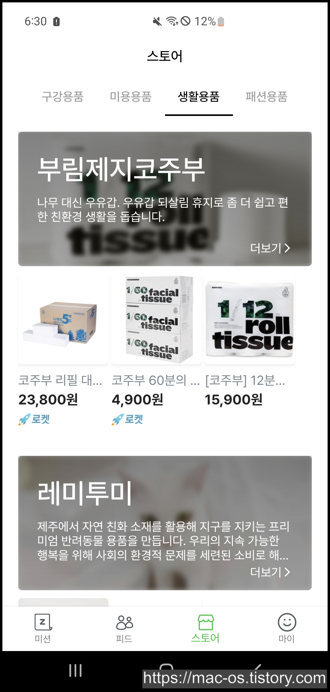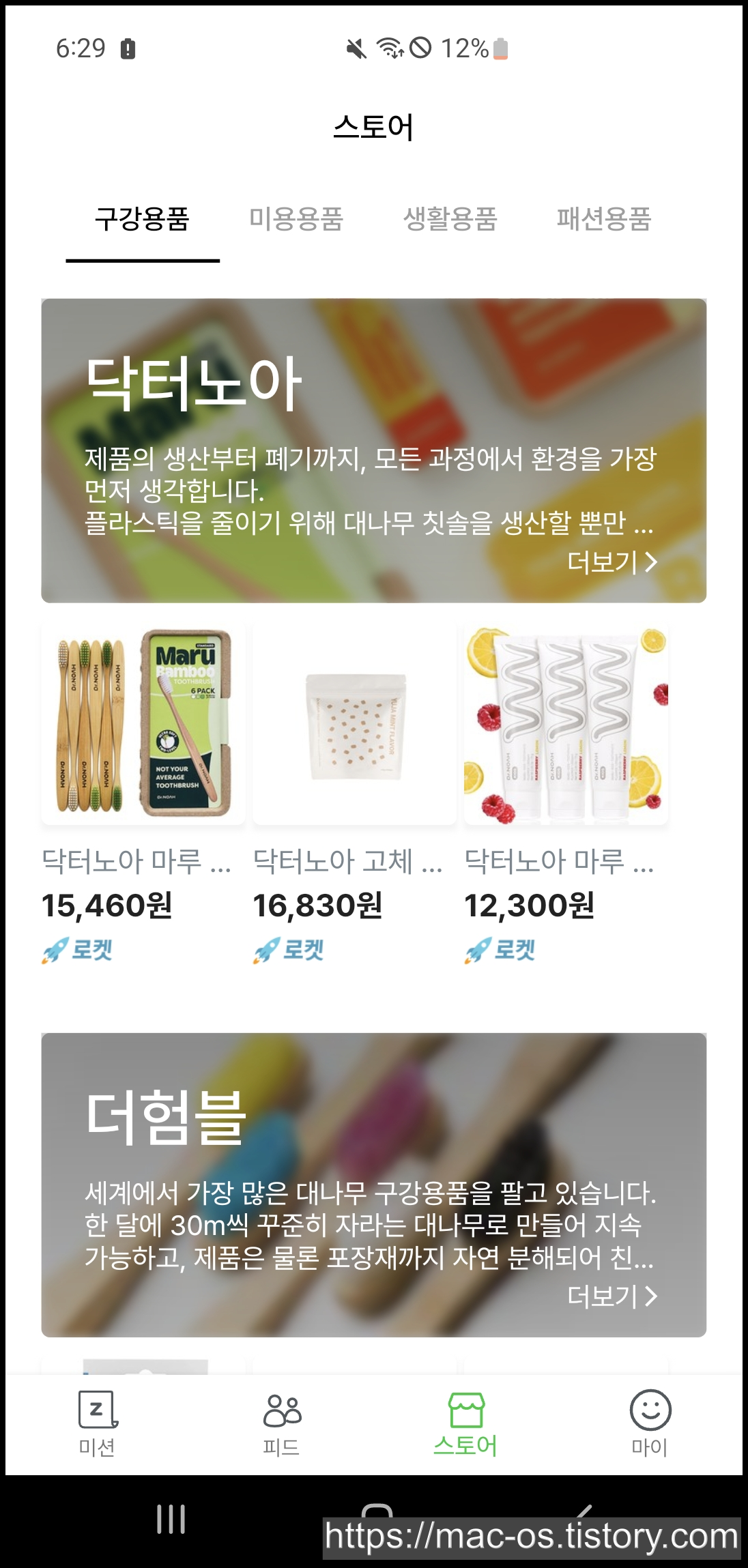 스토어에서는 구강용품, 미용용품, 생활용품, 패션용품을 판매하고 있는데, 친환경 제품을 주로 소개하고 있는 것 같다.