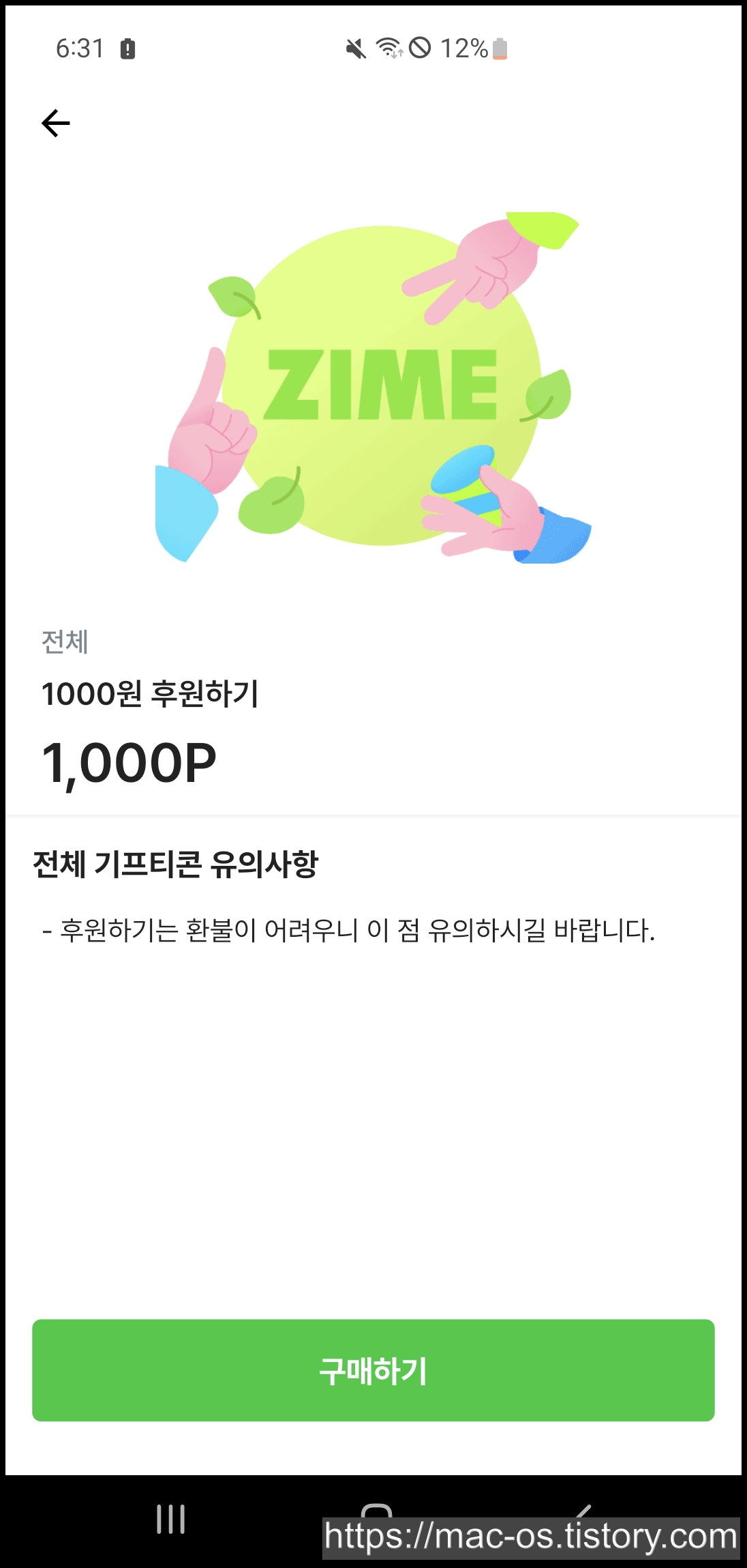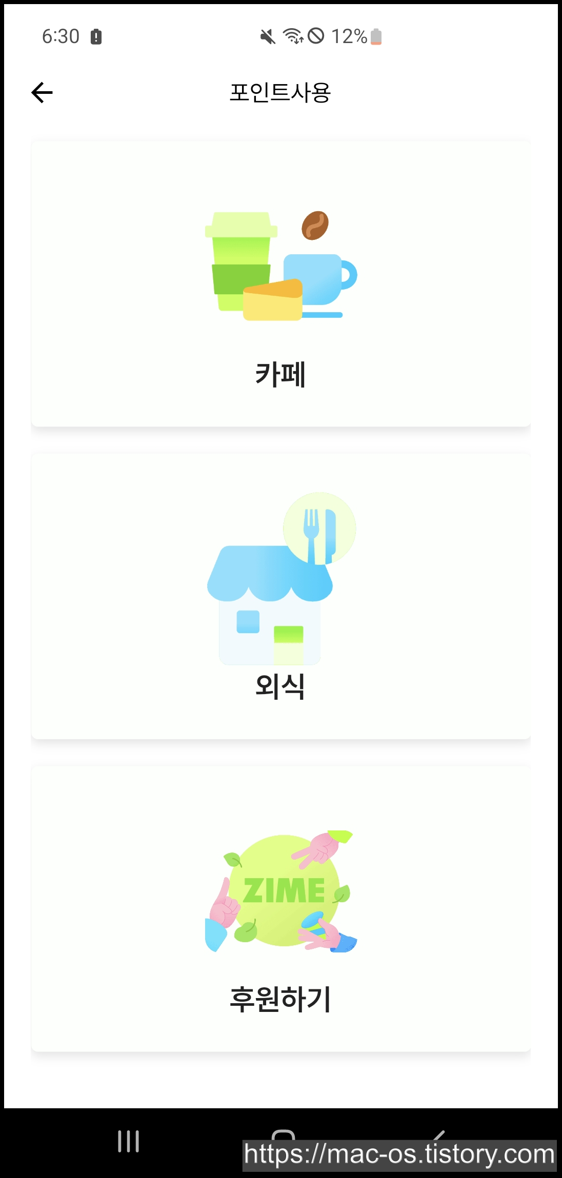 지미에서 얻은 포인트는 [마이] > [포인트] > [사용하기]로 이동하여 사용할 수 있다.