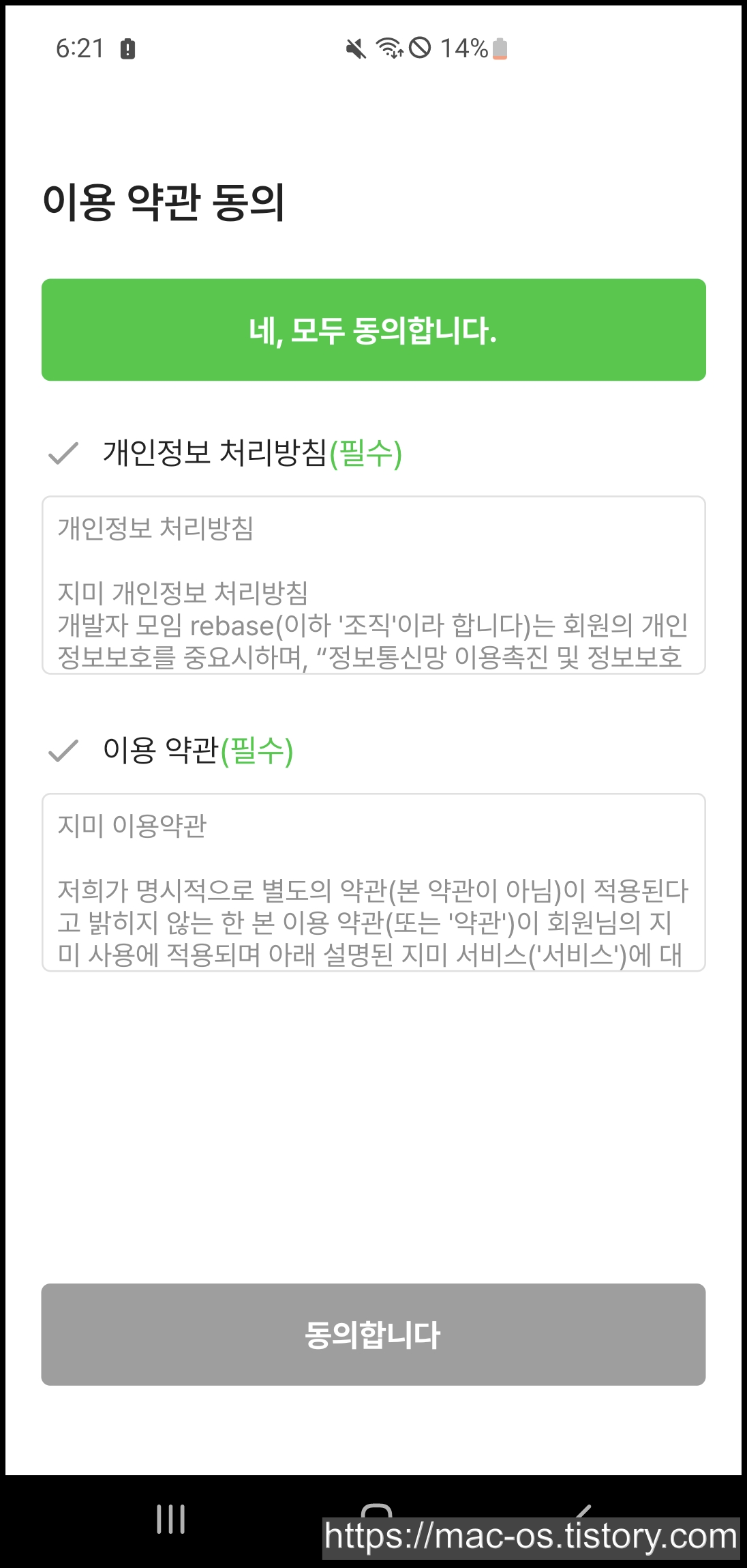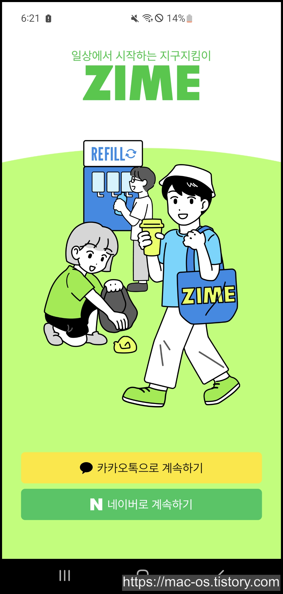 지미는 카카오톡이랑 네이버 계정으로 로그인할 수 있다. 나는 카카오 계정으로 시작했다.