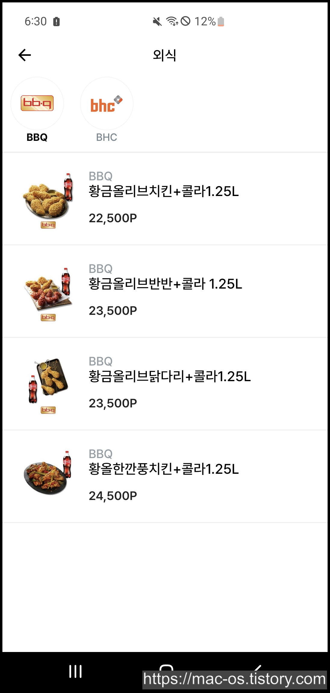 외식에서는 BBQ, BHC 사의 치킨들을 위주로 판매하고 있다.