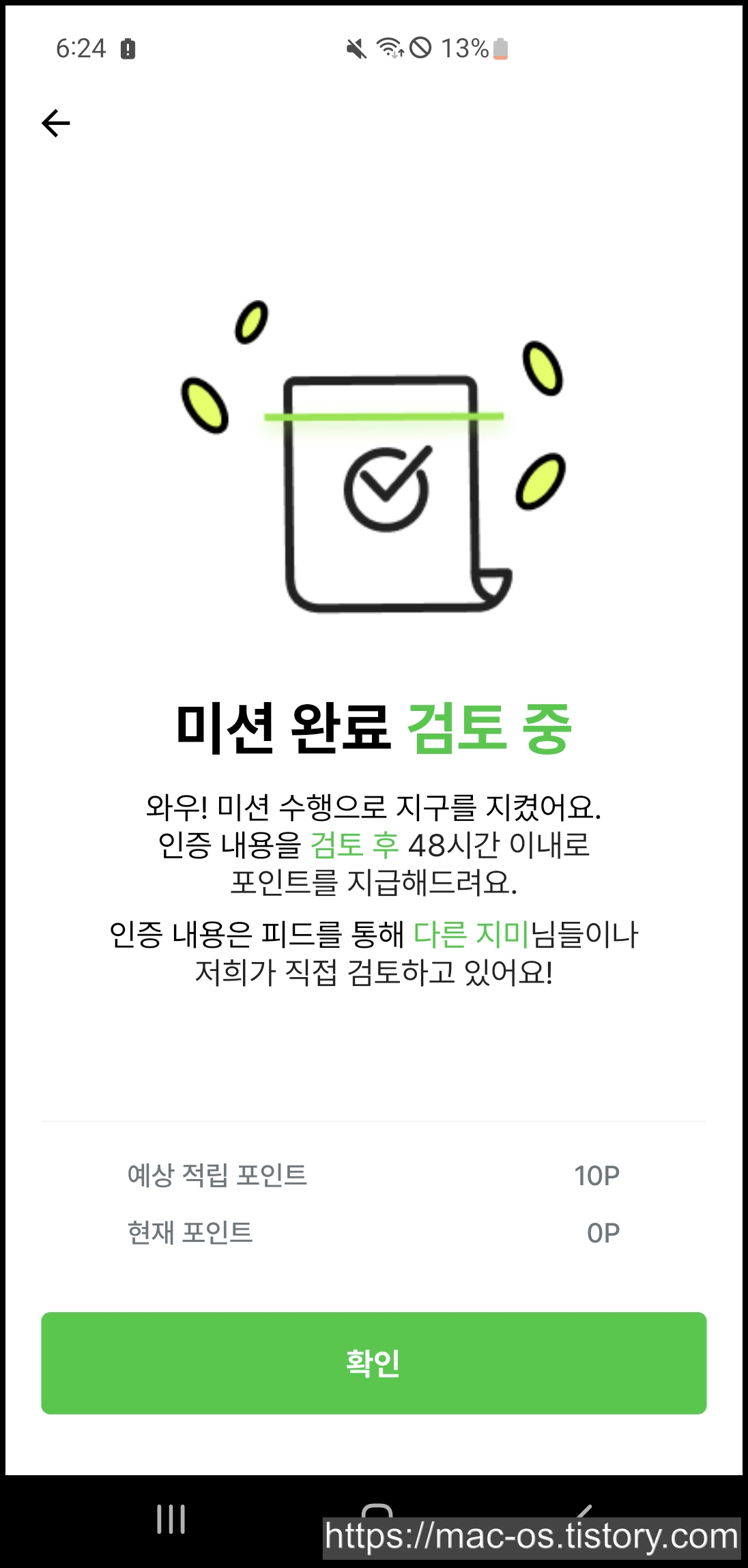 사진을 촬영해서 제출하면 이렇게 미션이 완료된다.