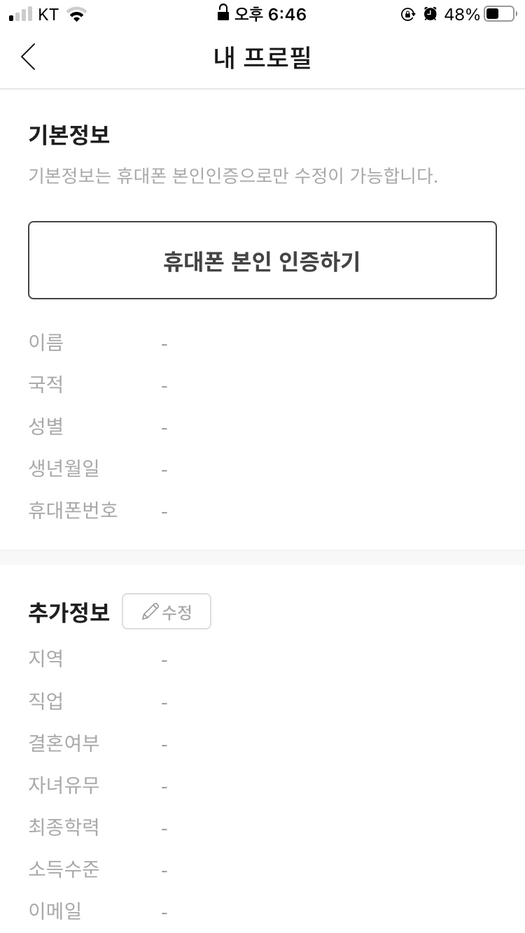 그리고 아래에 추가정보를 수정하실 수 있는데요. 추가정보를 입력한다고 해서 추가로 리워드를 지급해주지는 않으니 굳이 입력하실 필요는 없다고 생각합니다.
