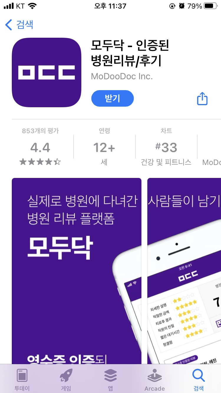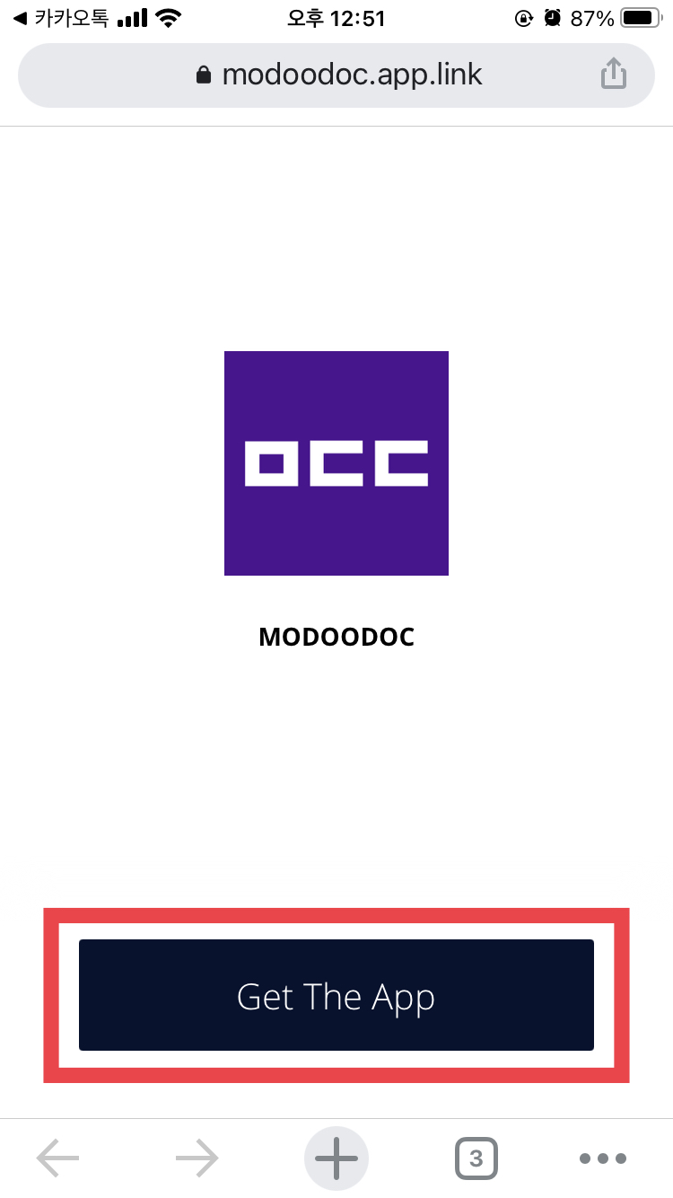 위에 있는 모두닥 친구초대 링크로 들어가셔서 'Get The App'을 터치해주세요. 그러면 자동으로 앱스토어 설치 화면으로 이동하게 됩니다. 스토어에서 모두닥을 설치하고 실행해주세요.