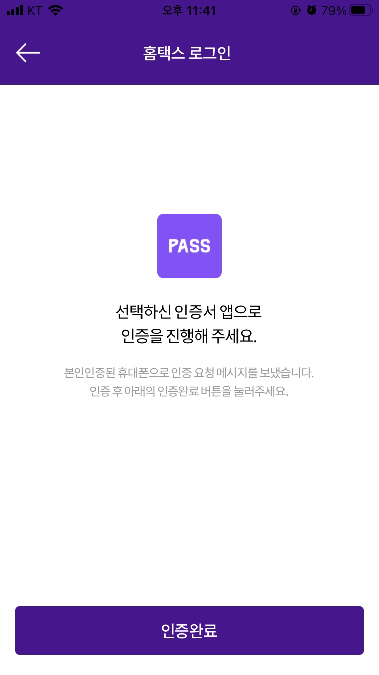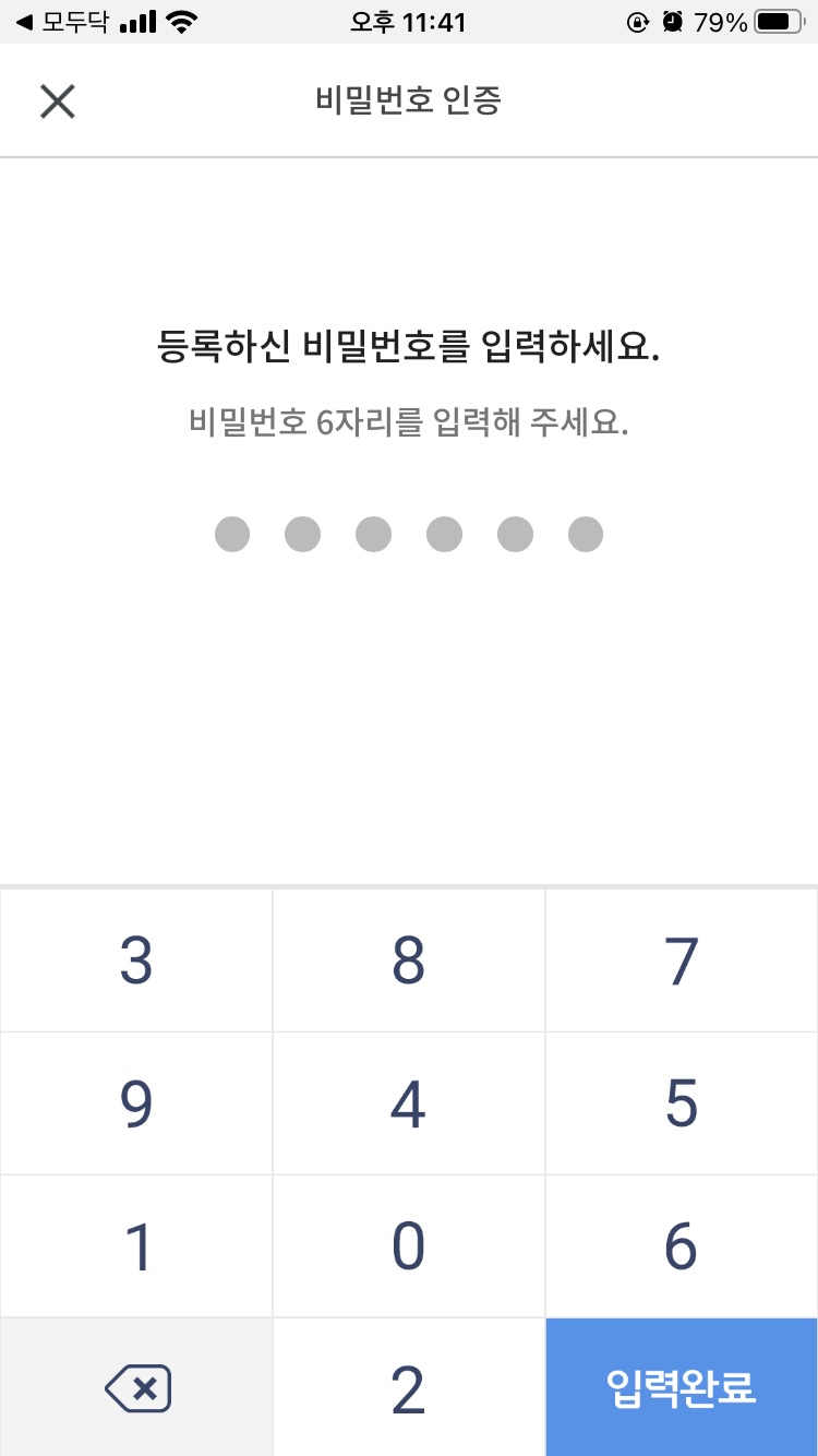 PASS에서 등록했던 비밀번호 6자리를 입력하게 되면 인증서 로그인이 완료됩니다.