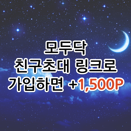 관심이 있으신 분은 아래의 모두닥 친구초대 링크를 통하여 앱을 설치해보세요. 24시간 이내에 1,500P가 추가로 지급됩니다.