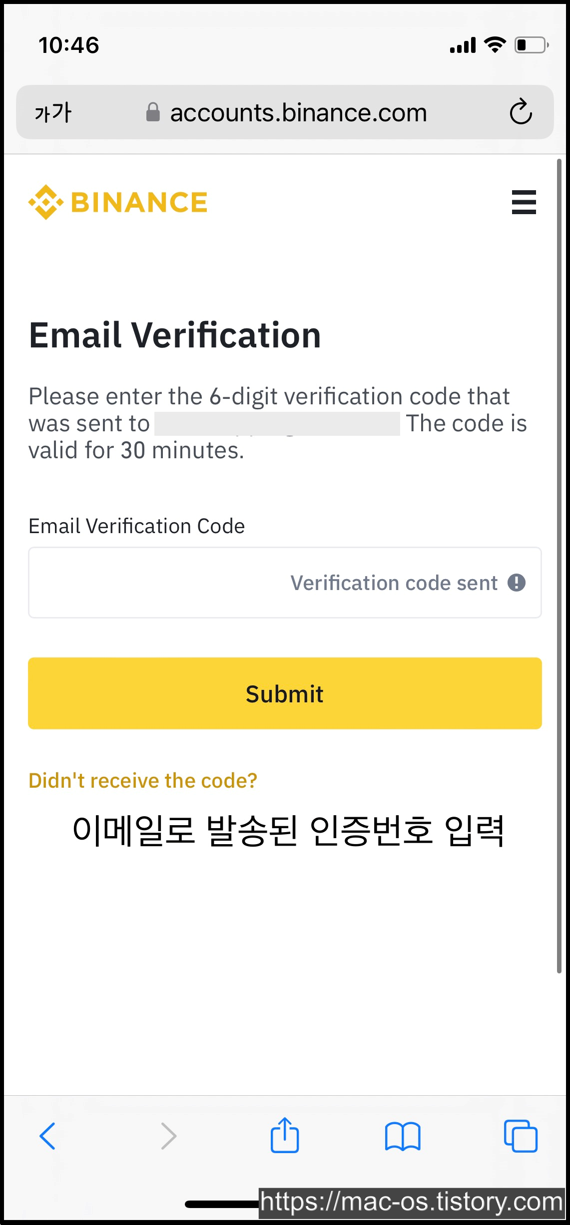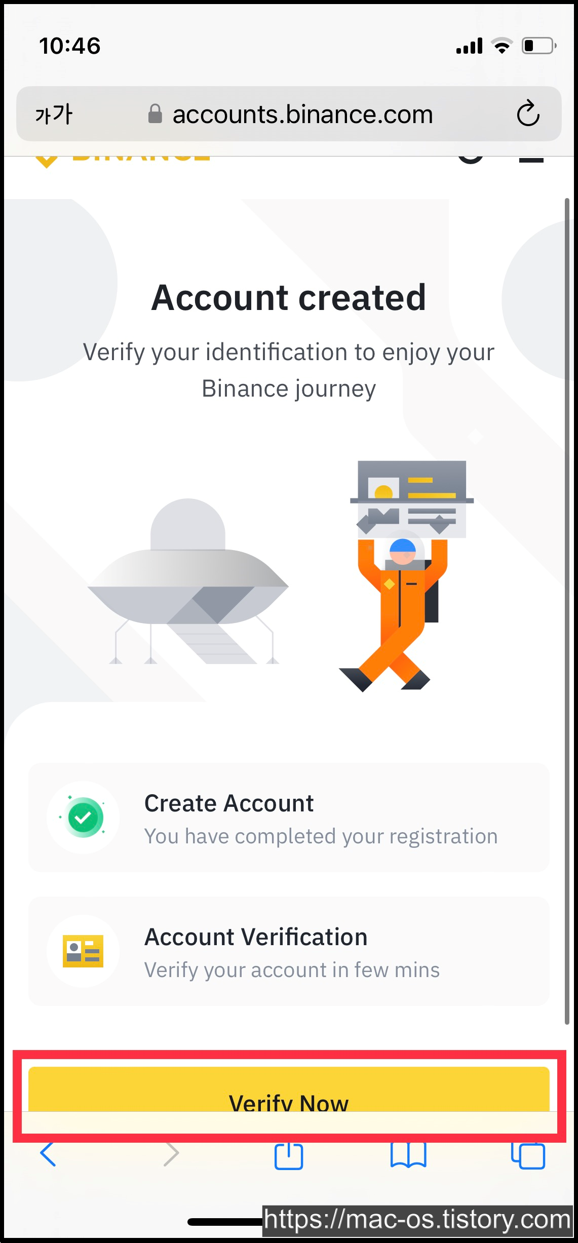 바이낸스에서 보낸 인증메일에서 숫자 6자리를 확인하고 입력한 다음, [Verify Now]을 클릭합니다.