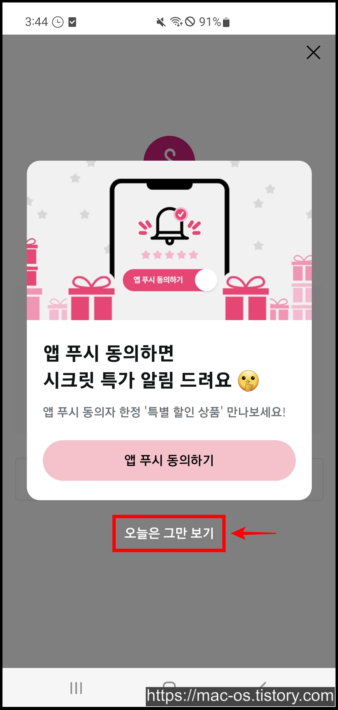 카카오 계정 로그인 후 알림 창이 뜨는데 [오늘은 그만 보기]를 눌러 닫아줘요.