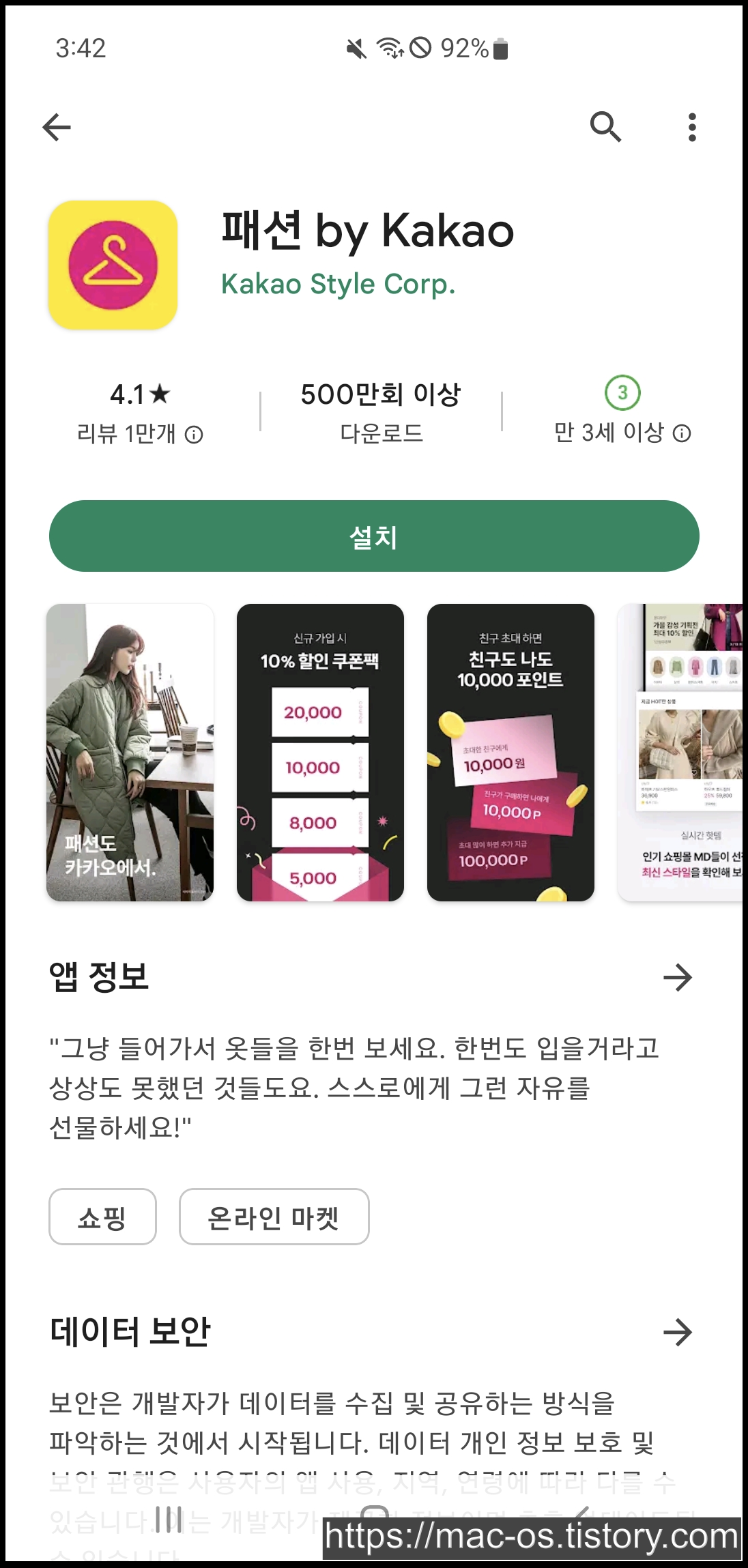 - 앱 특징 : 주식회사 카카오스타일에서 운영하는 모바일 쇼핑몰 앱