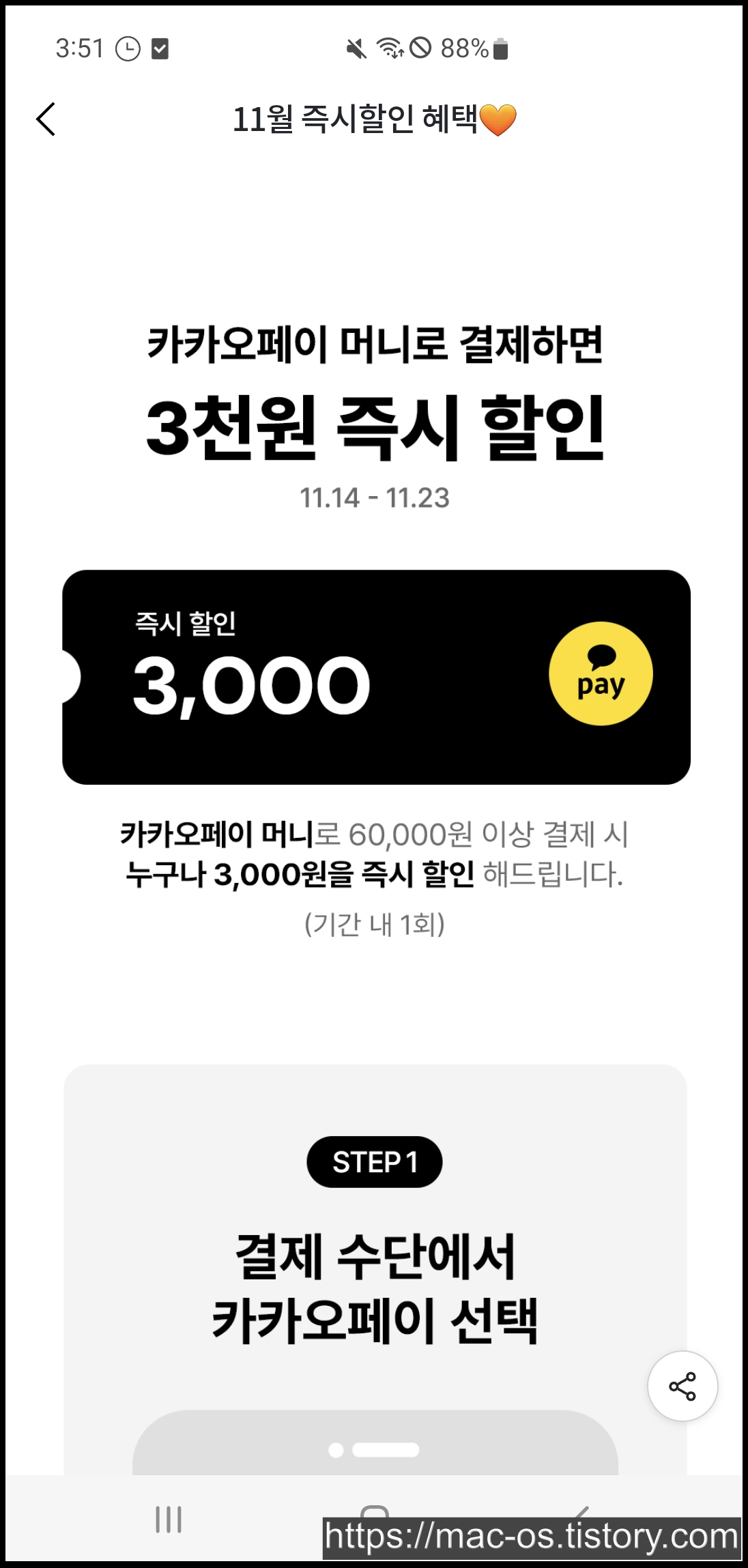 현재 카카오톡 채널 친구 특별쿠폰, 첫 구매 혜택 웰컴 쿠폰, 카카오페이 머니 결제 3천원 즉시 할인 등 다양한 이벤트가 준비되어 있으니 확인해보세요~