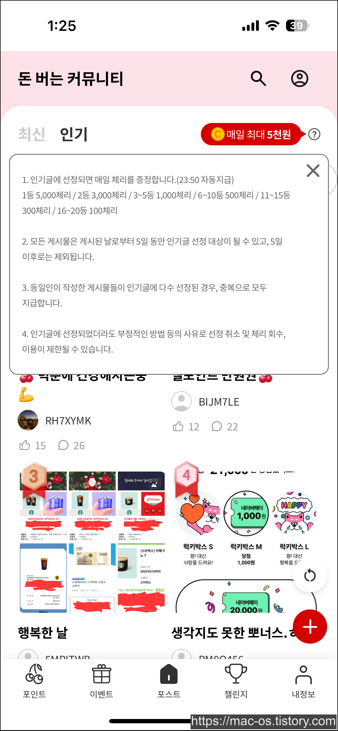 인기글로 선정되면 포인트를 주는 곳입니다.
