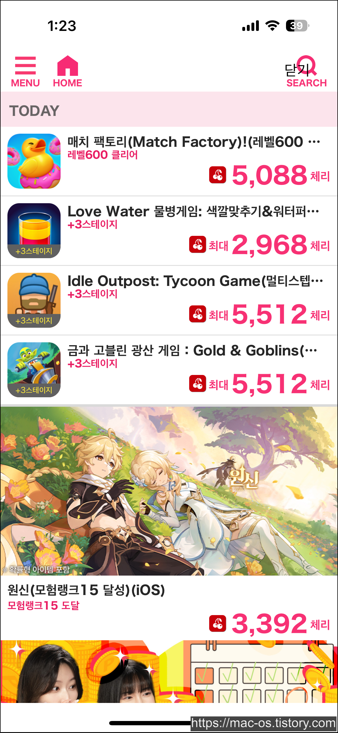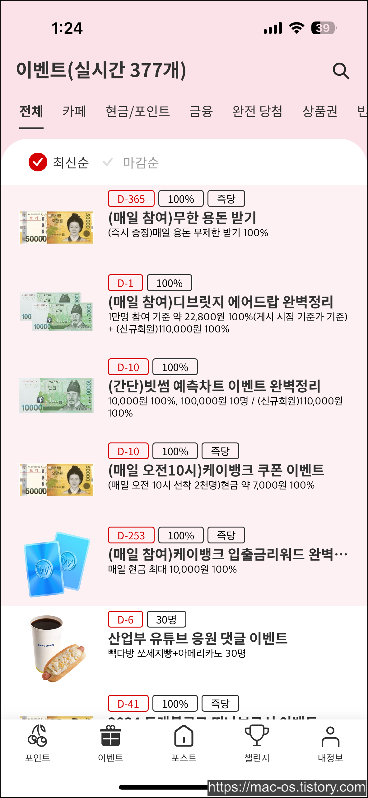 이벤트 탭을 눌러보면 여러 앱이나 사이트에서 진행중인