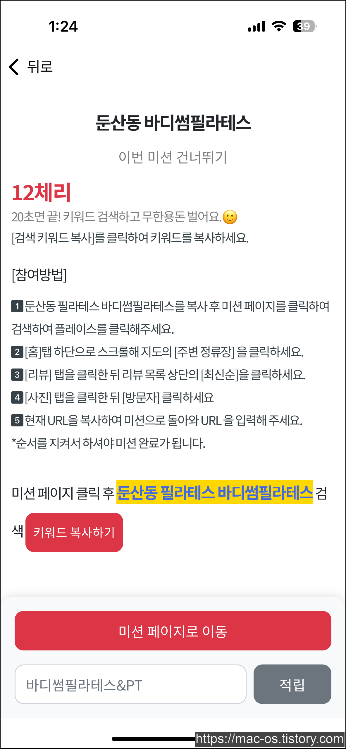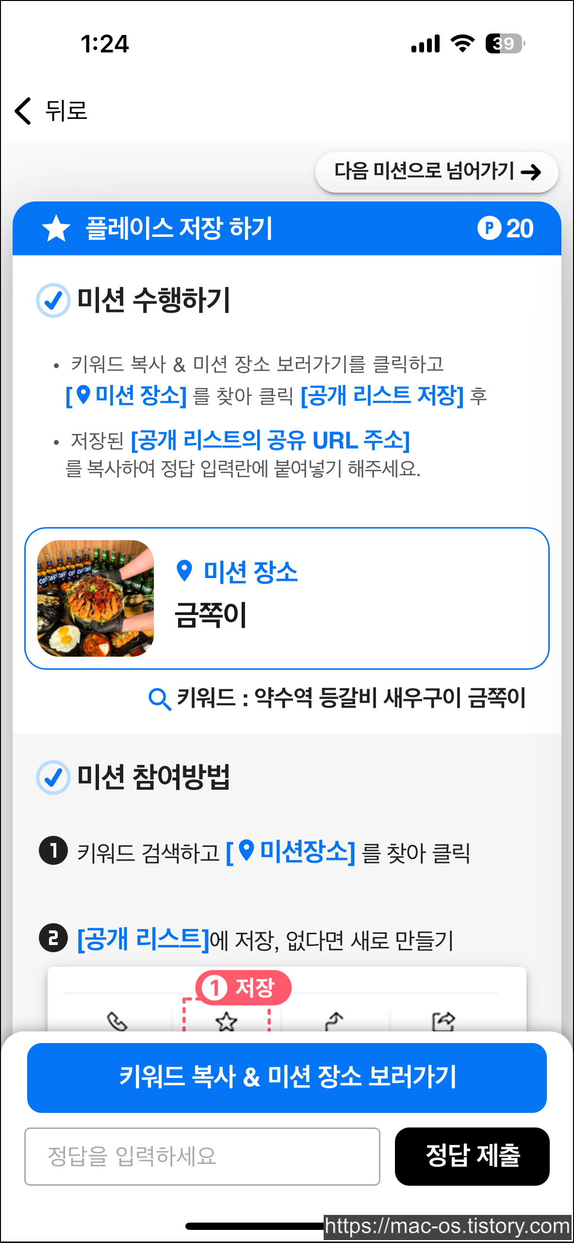 키워드를 복사하고 플레이스에 방문합니다.
