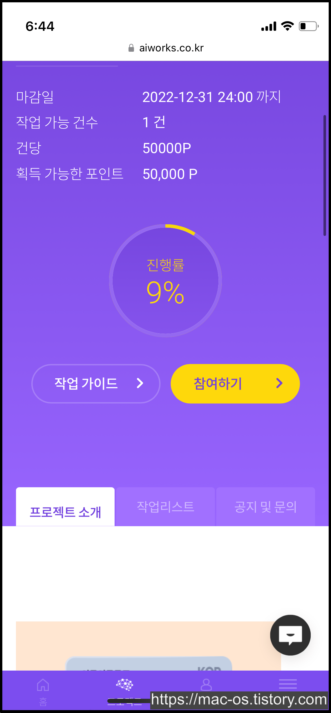 마음에 드는 프로젝트를 선택하고, 작업 가이드를 살펴본 다음 참여하기 버튼을 누르면 프로젝트가 진행되는 것 같아요.