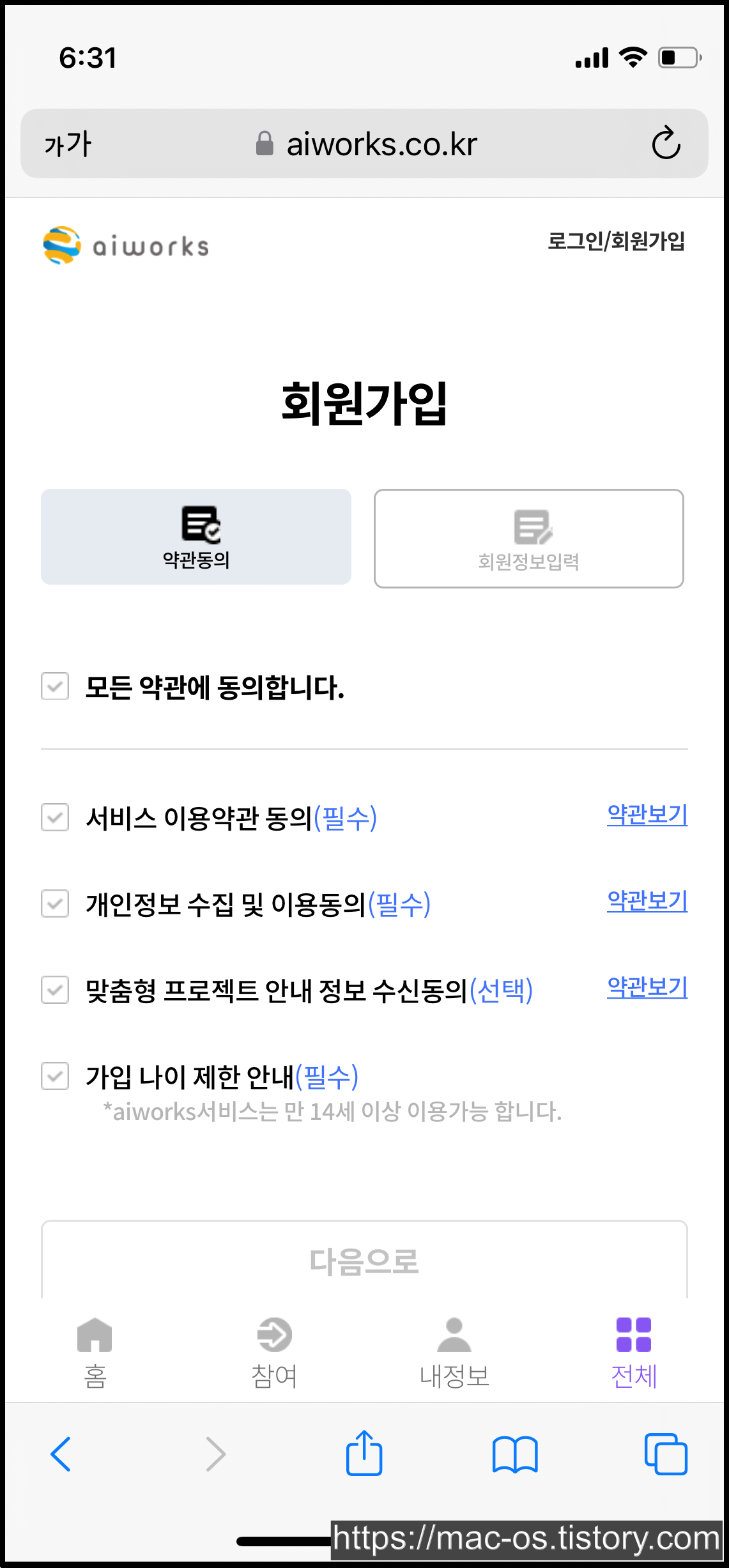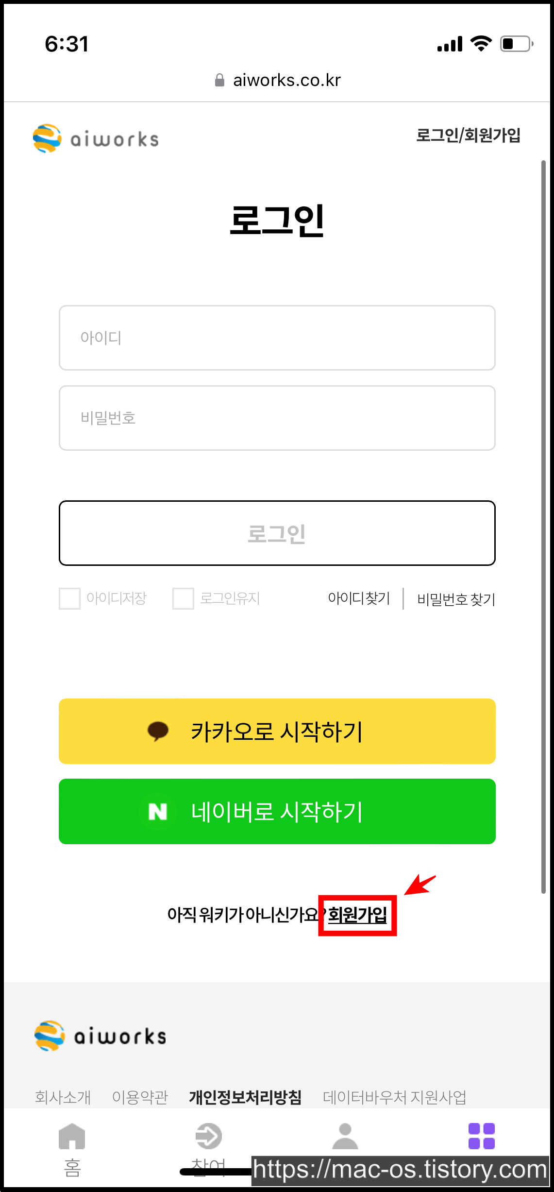 ▼ aiworks 회원가입 링크