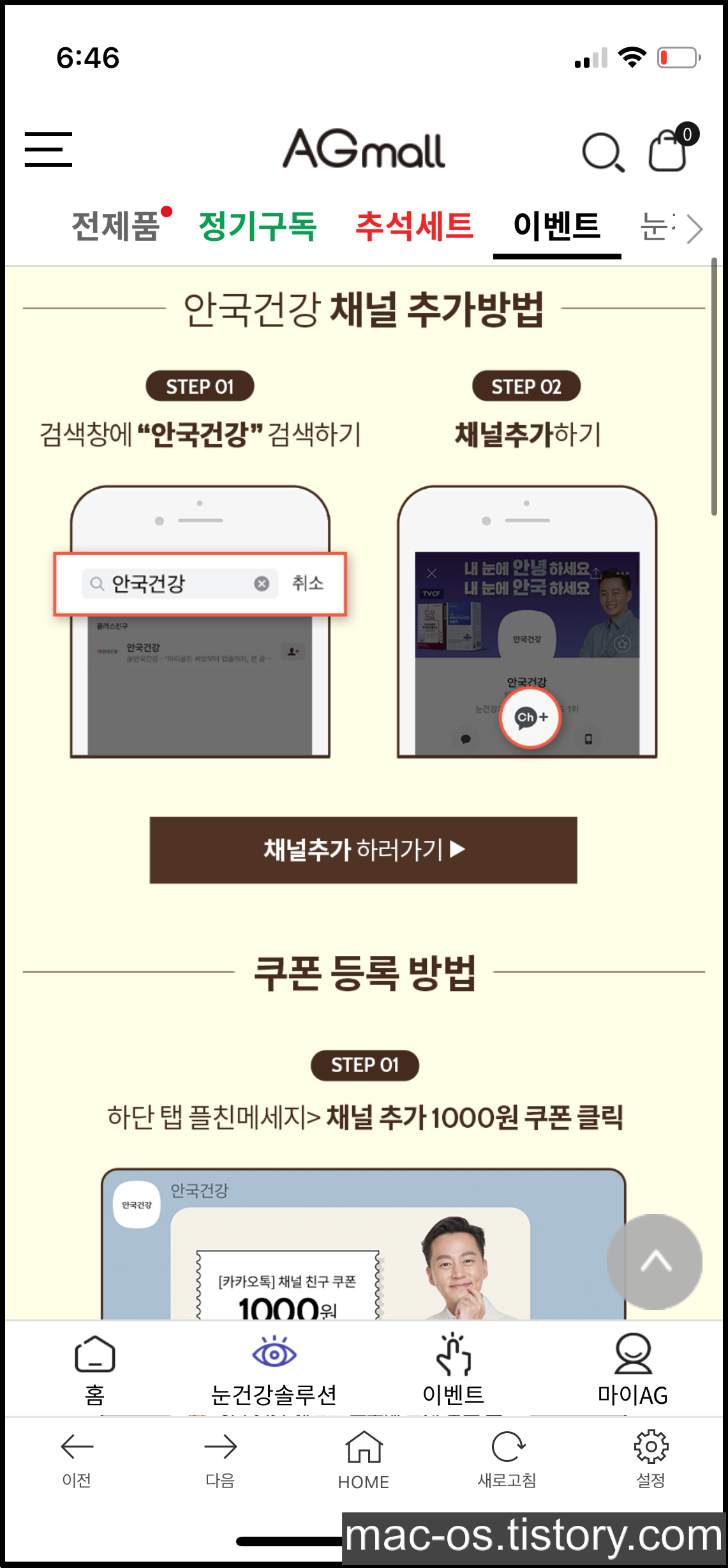 안국건강 카카오톡 채널을 추가하면 1천원 쿠폰을 받을 수 있습니다.
